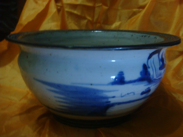 山水紋青花瓷香爐