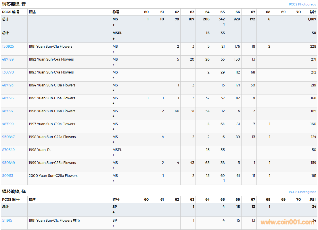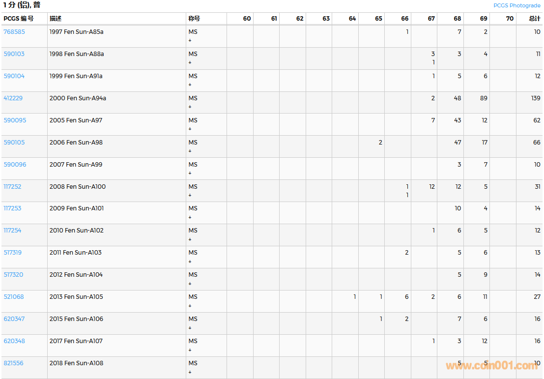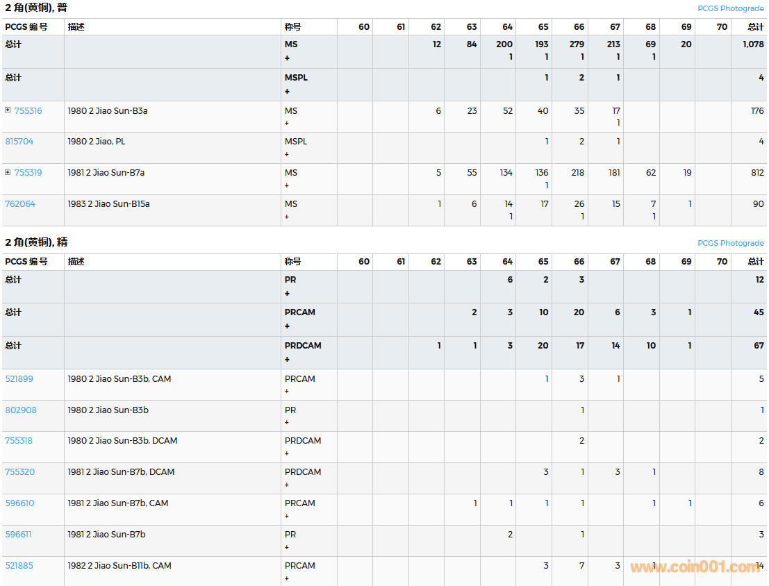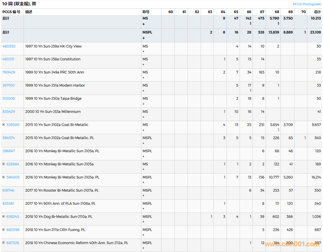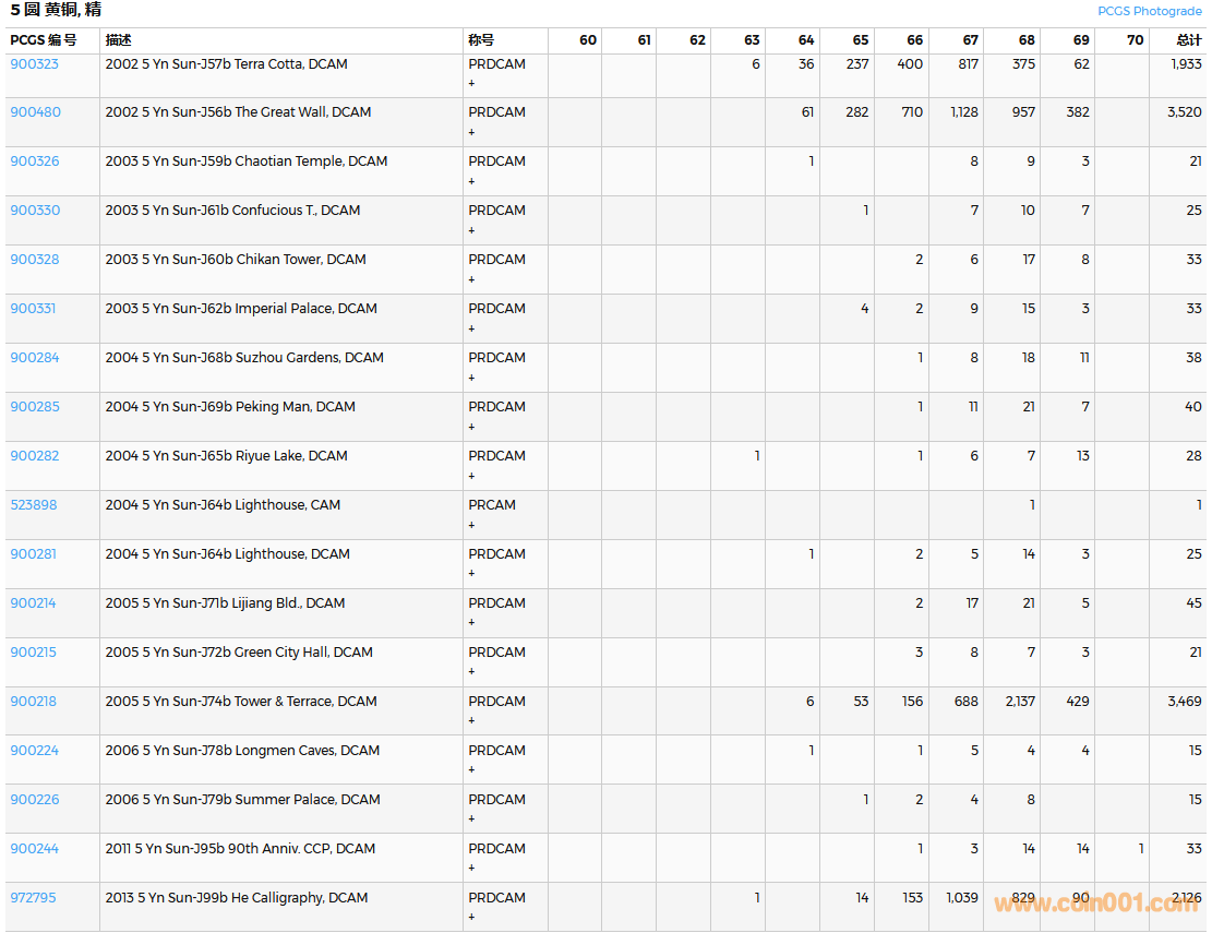 PCGS硬幣評(píng)級(jí)數(shù)量報(bào)告( ..