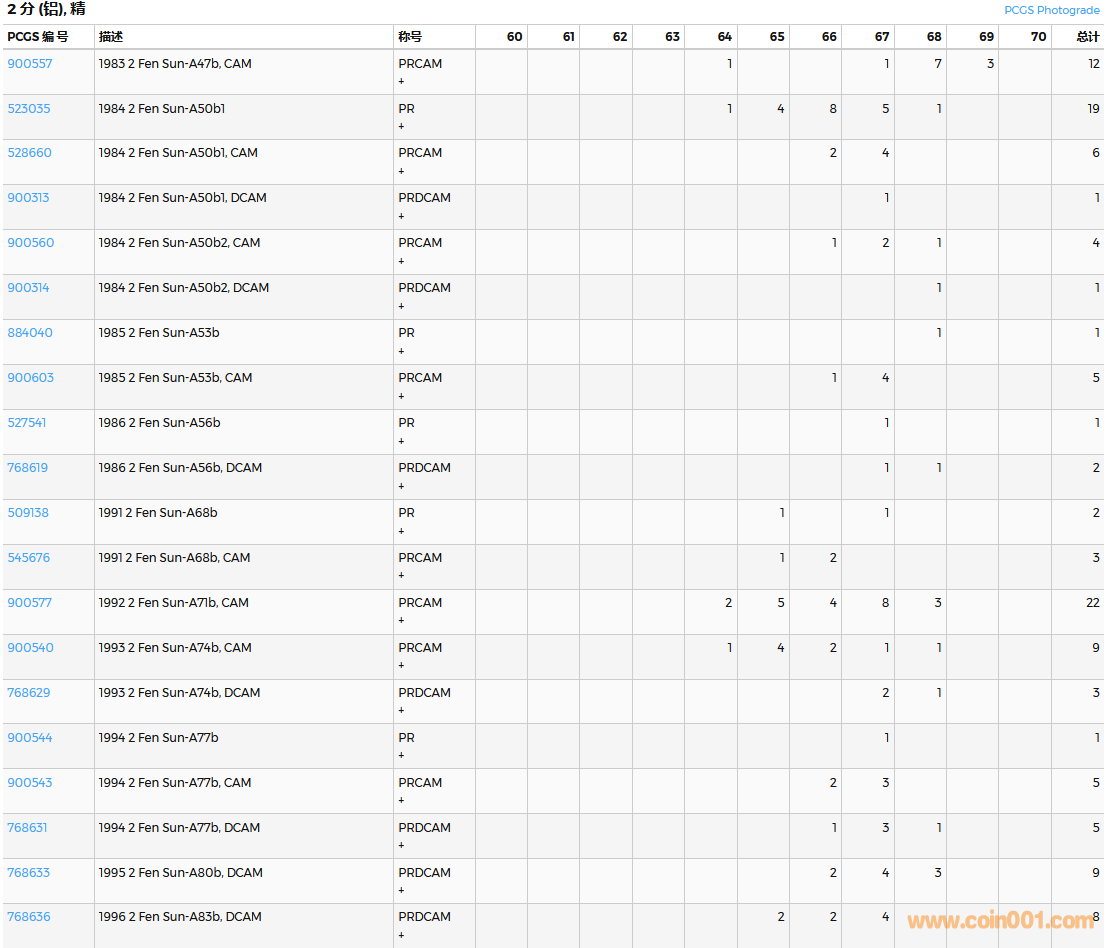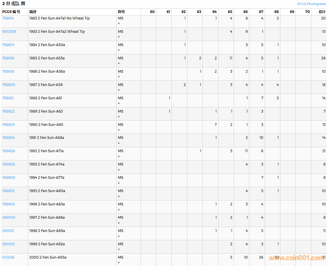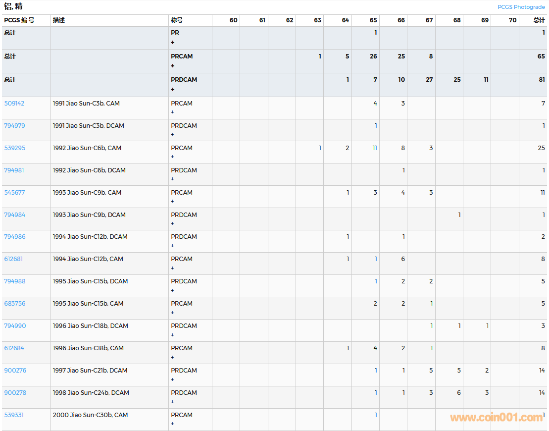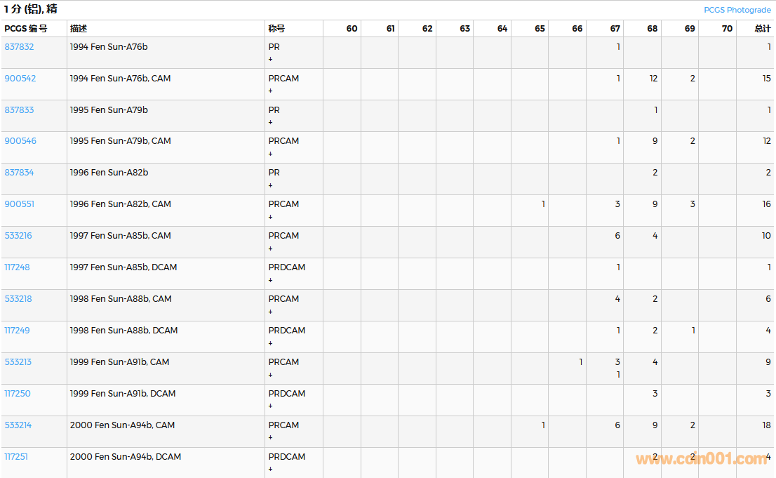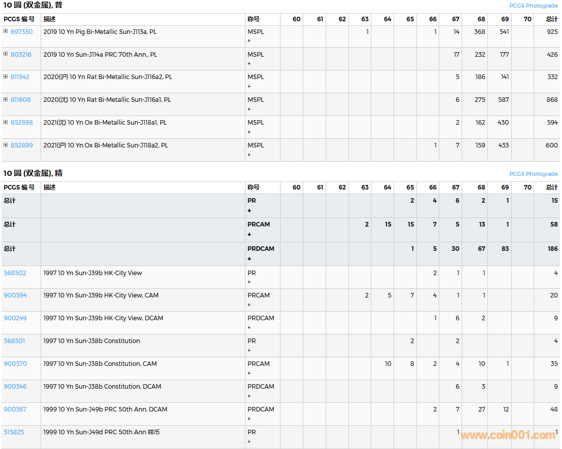 PCGS硬幣評(píng)級(jí)數(shù)量報(bào)告( ..