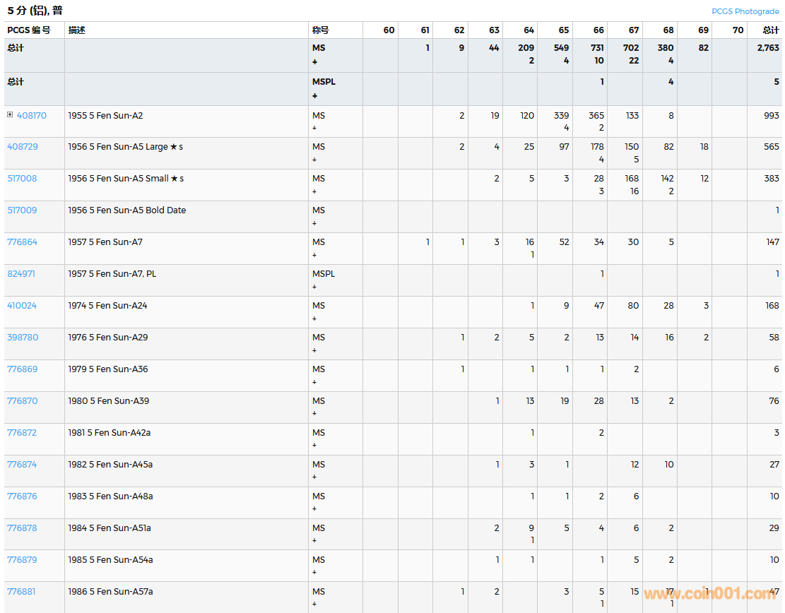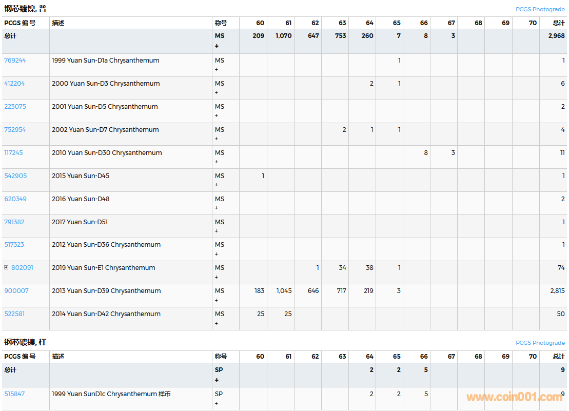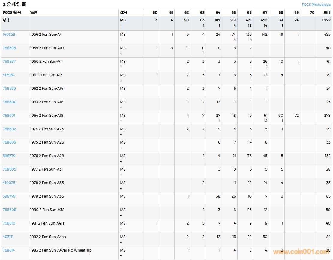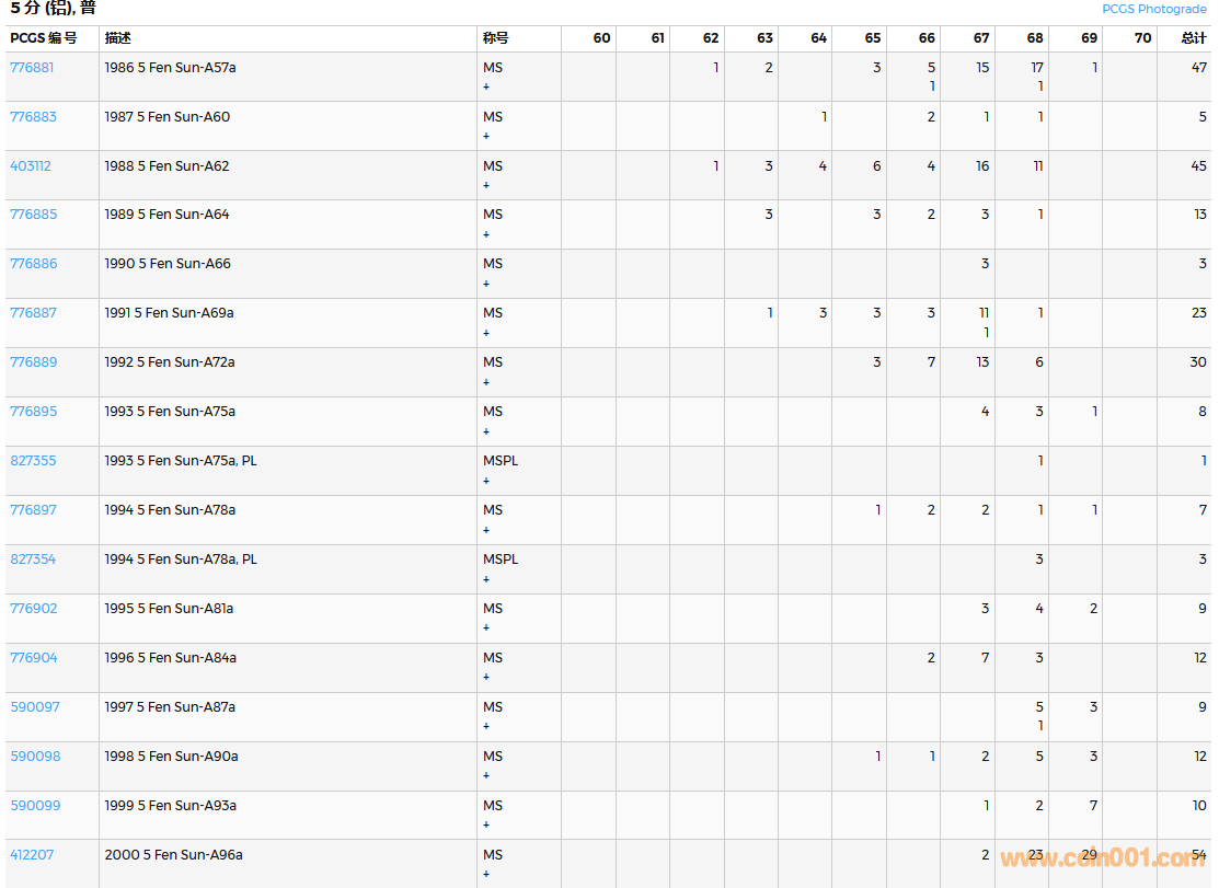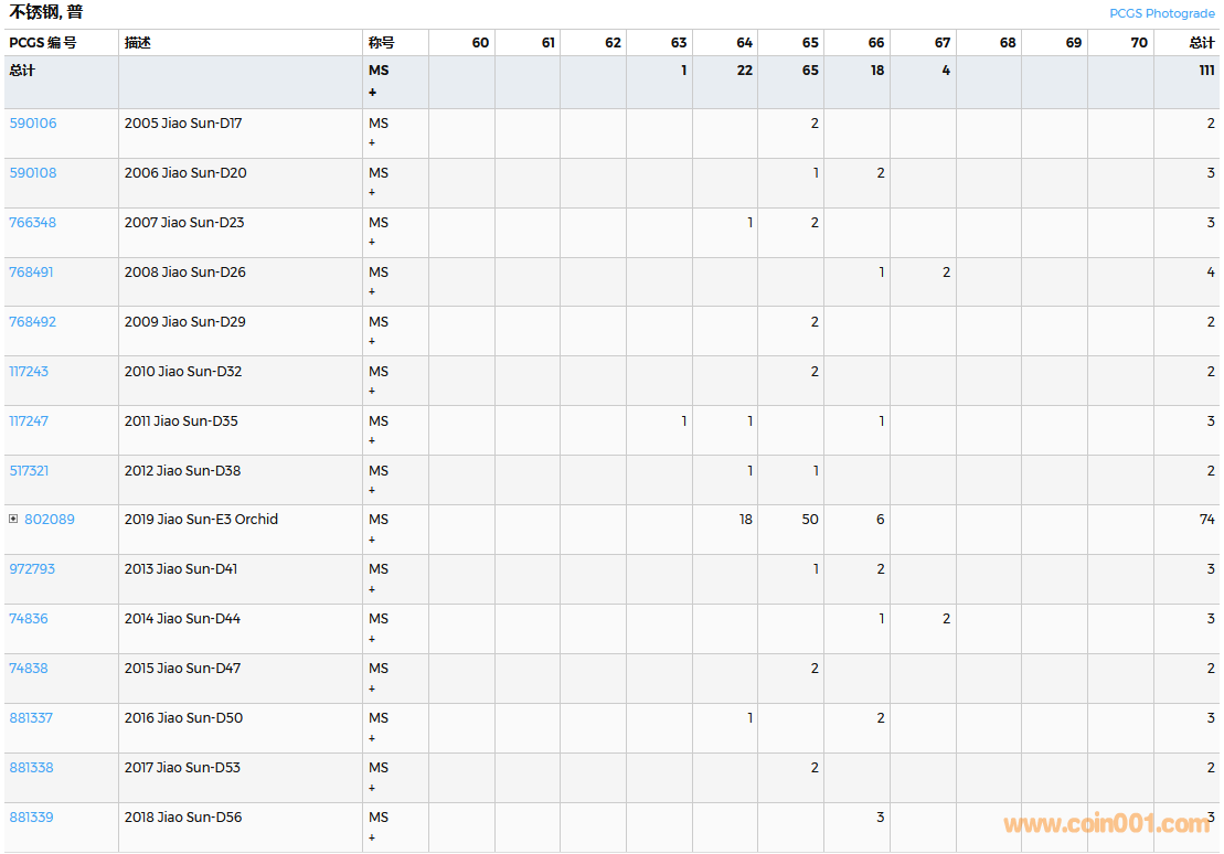 PCGS硬幣評(píng)級(jí)數(shù)量報(bào)告( ..