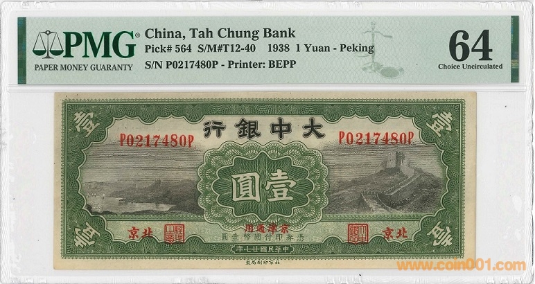 民國27年大中銀行一元 ..
