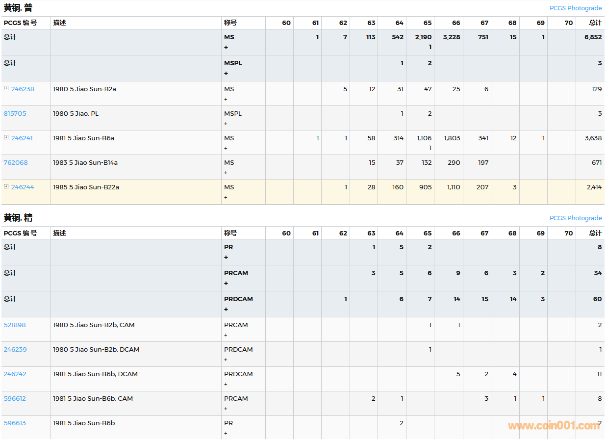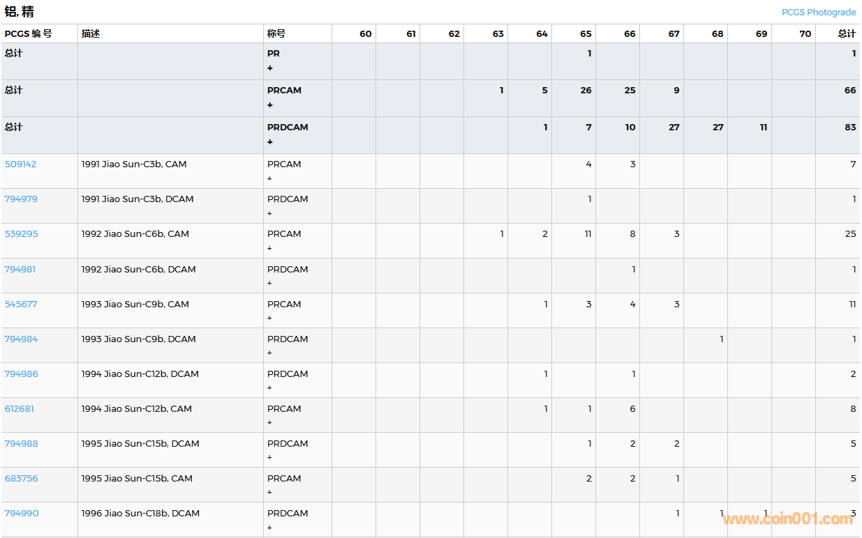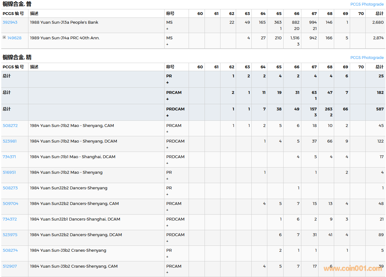 PCGS硬幣評級數(shù)量報告( ..