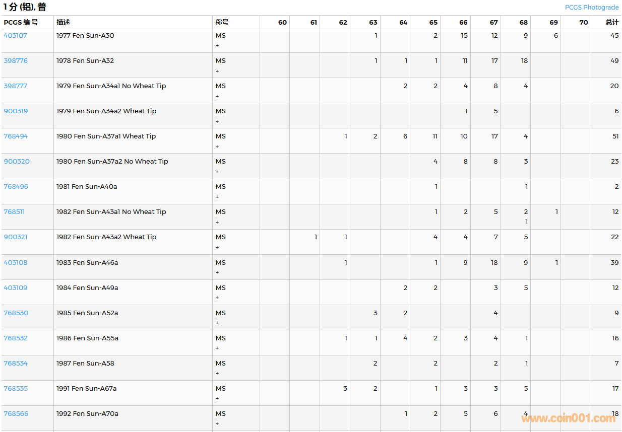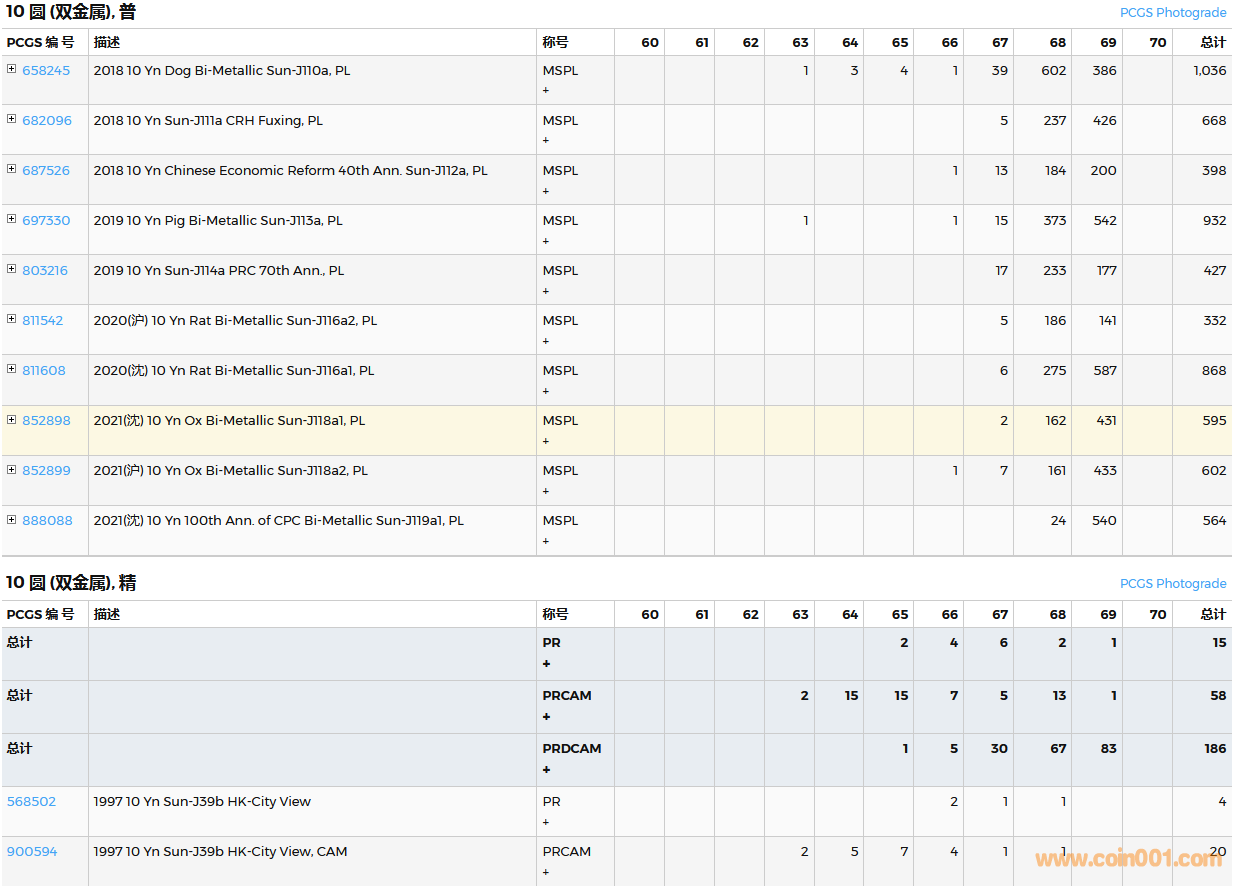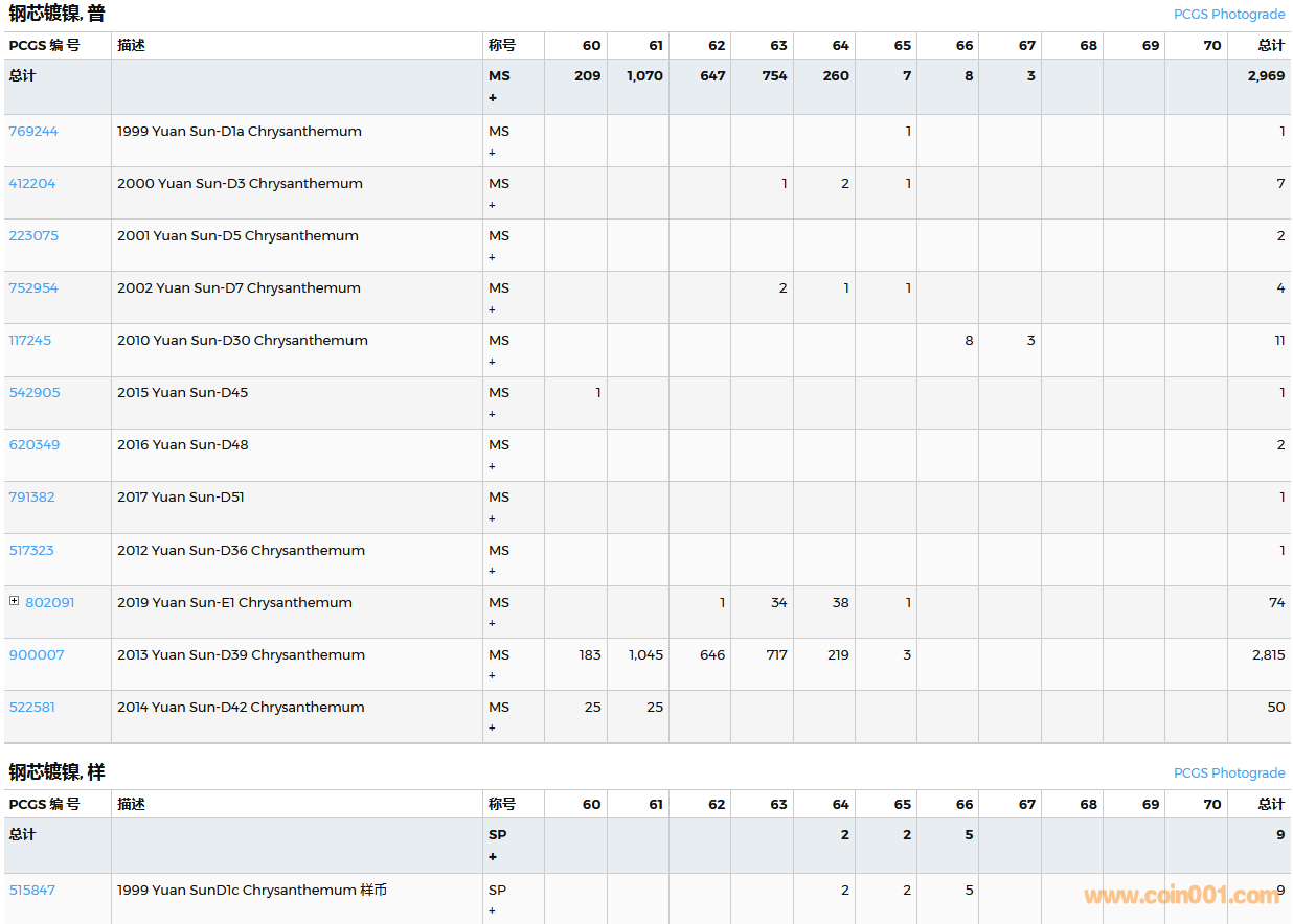 PCGS硬幣評級數(shù)量報告( ..