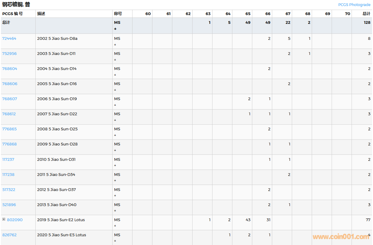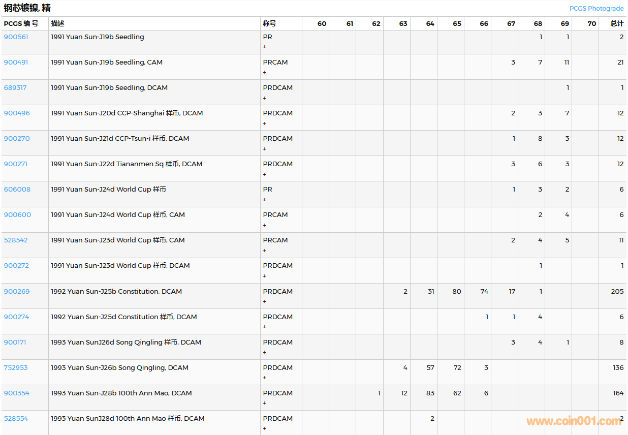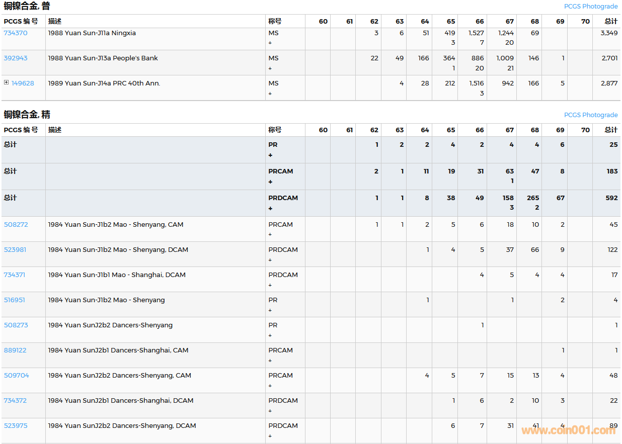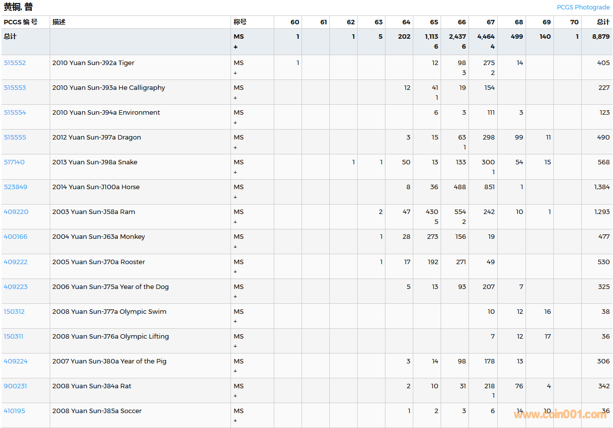 PCGS硬幣評(píng)級(jí)數(shù)量報(bào)告