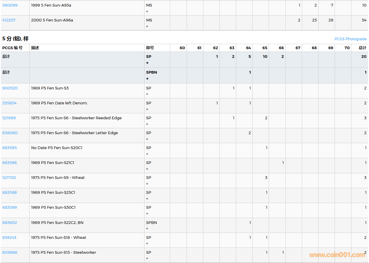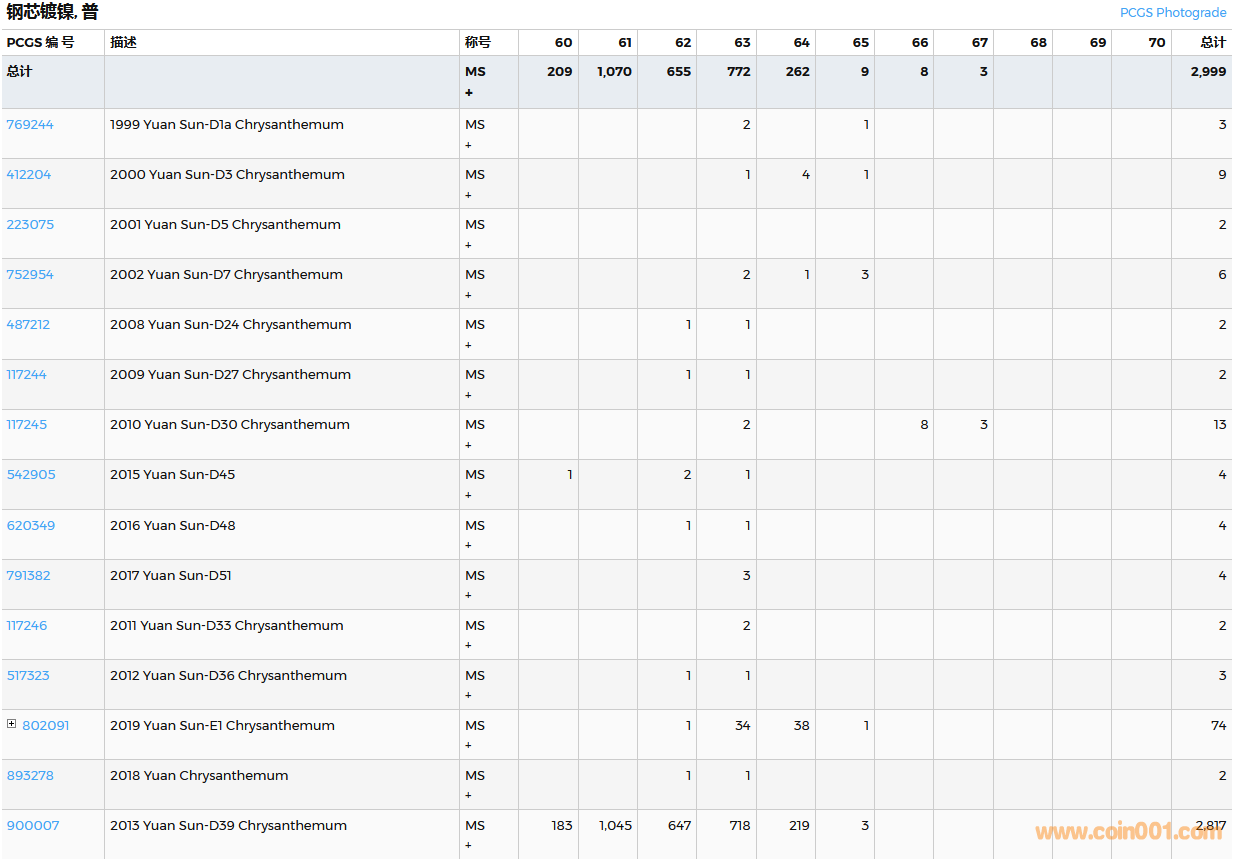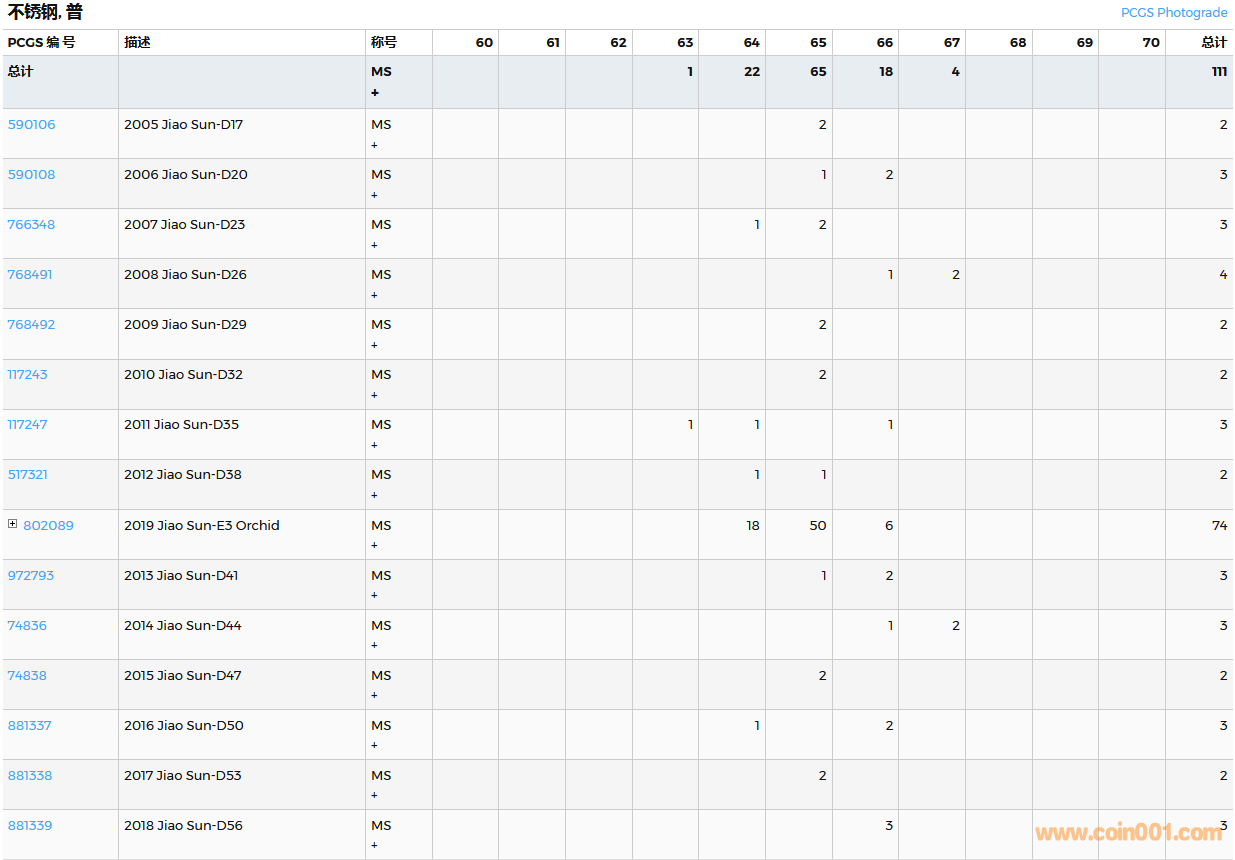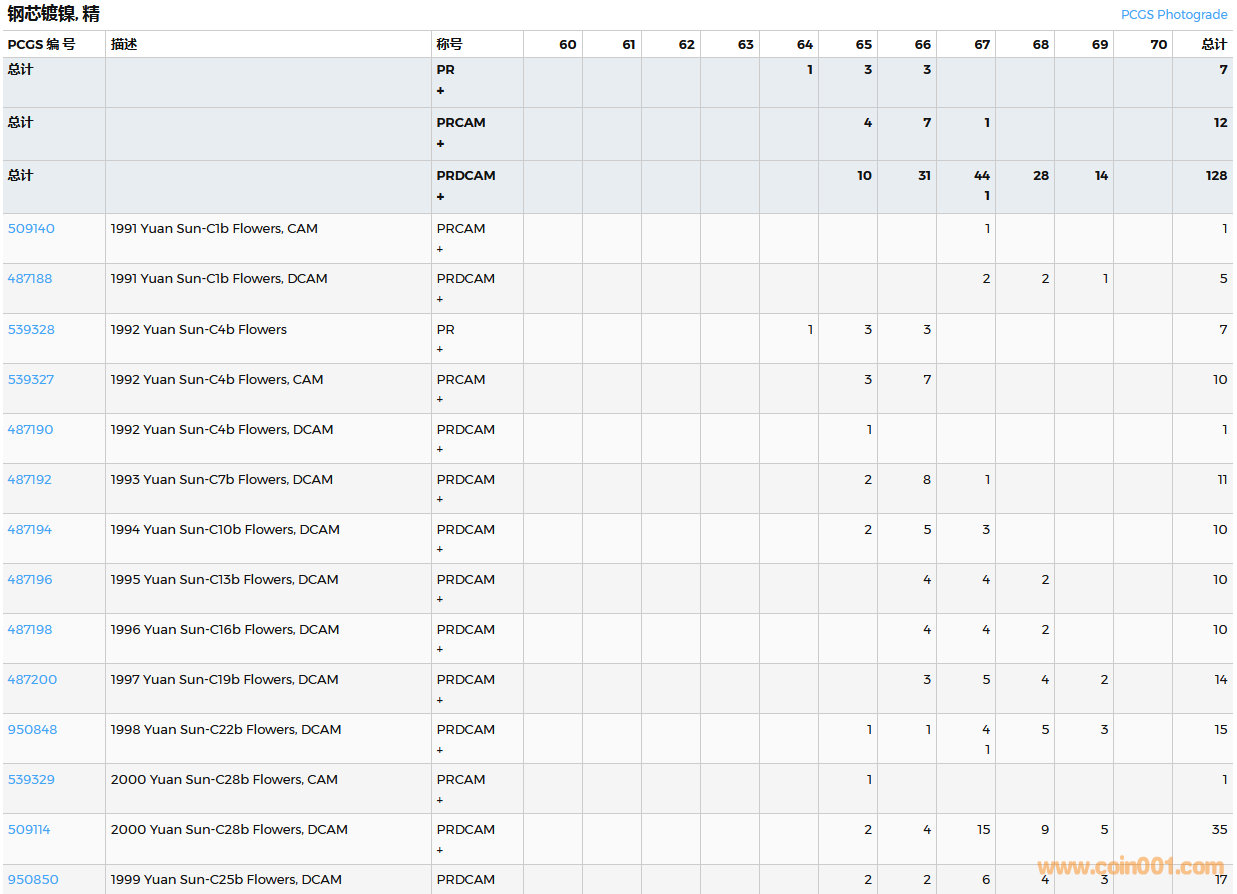 PCGS硬幣評(píng)級(jí)數(shù)量報(bào)告
