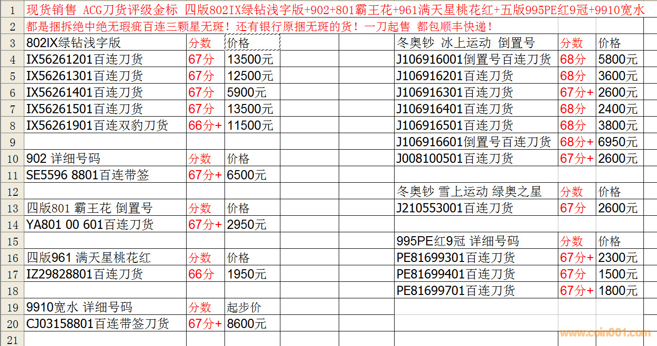 ACG 刀貨評(píng)級(jí) 四版幣和 ..