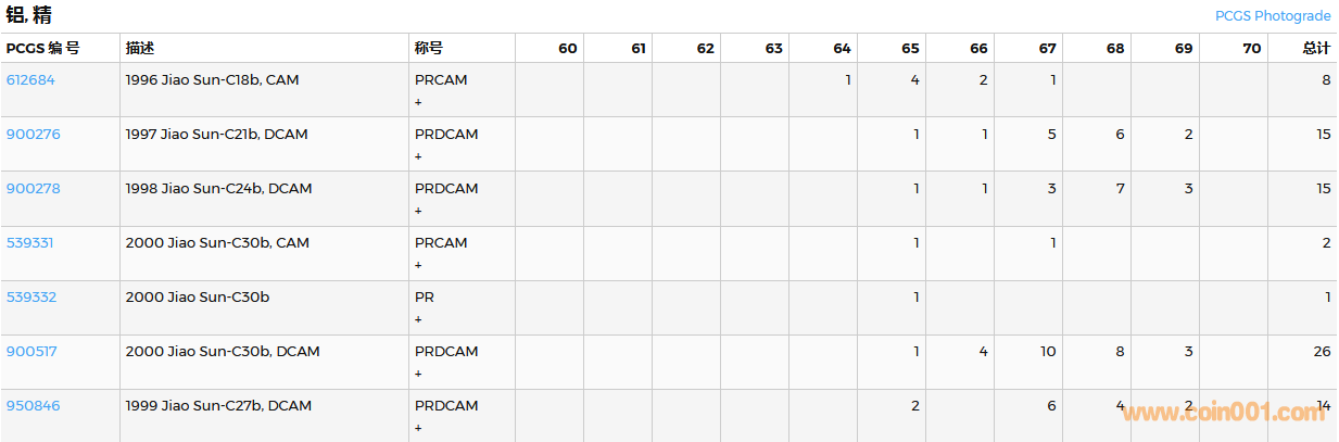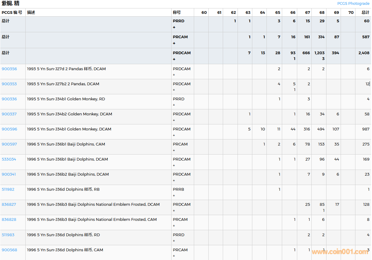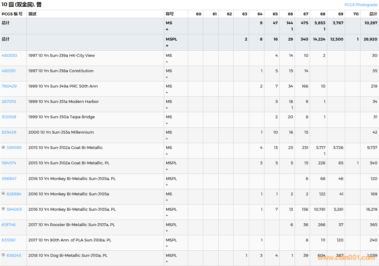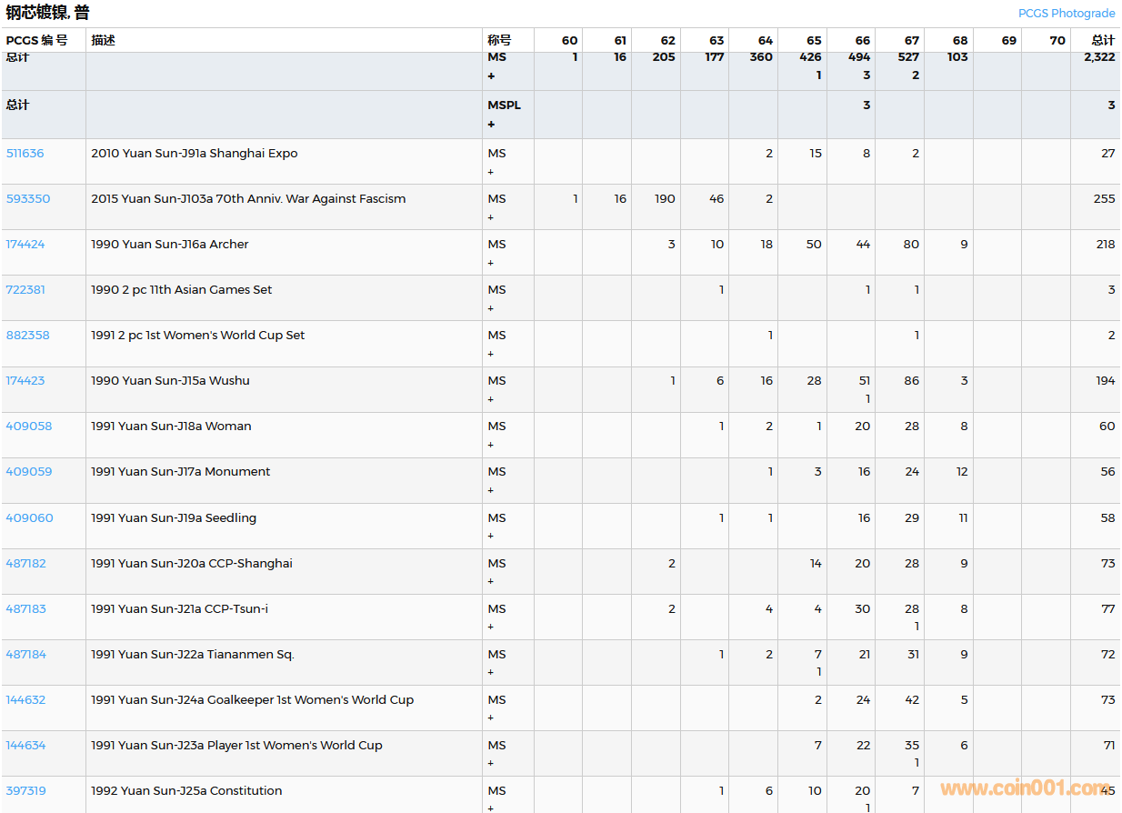 PCGS硬幣評(píng)級(jí)數(shù)量報(bào)告( ..
