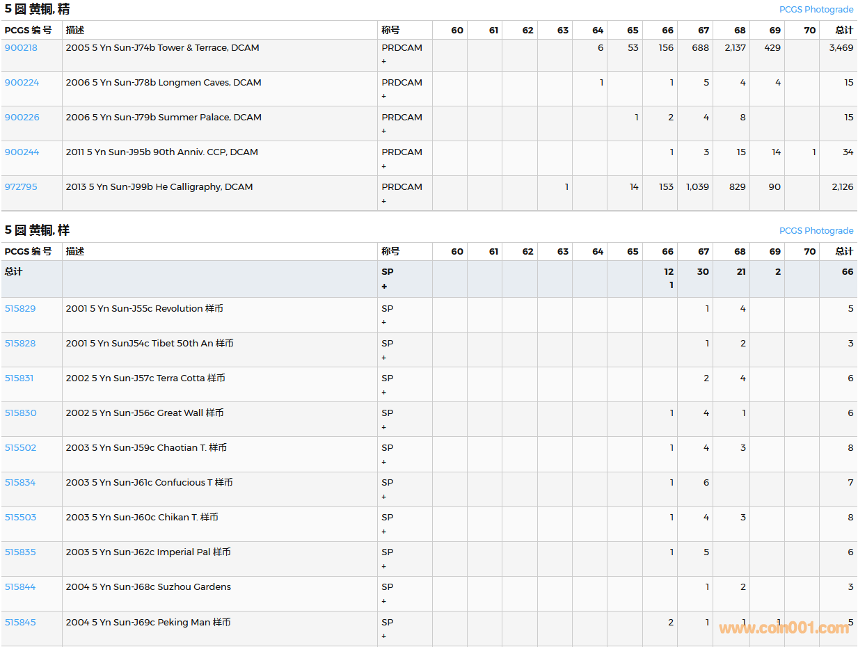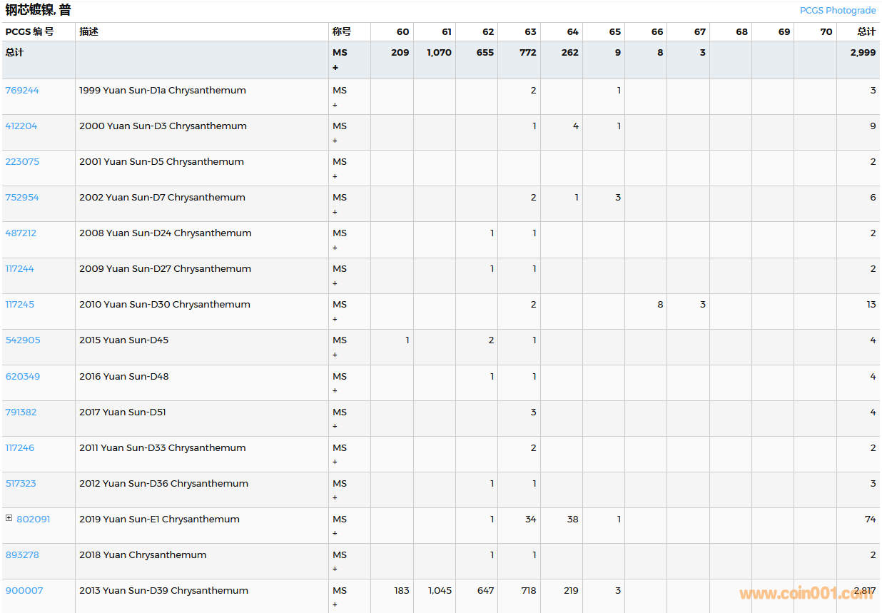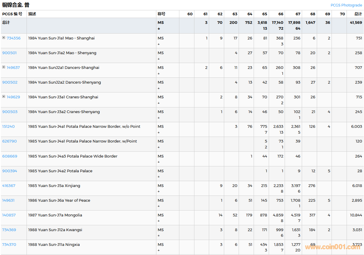 PCGS硬幣評(píng)級(jí)數(shù)量報(bào)告( ..