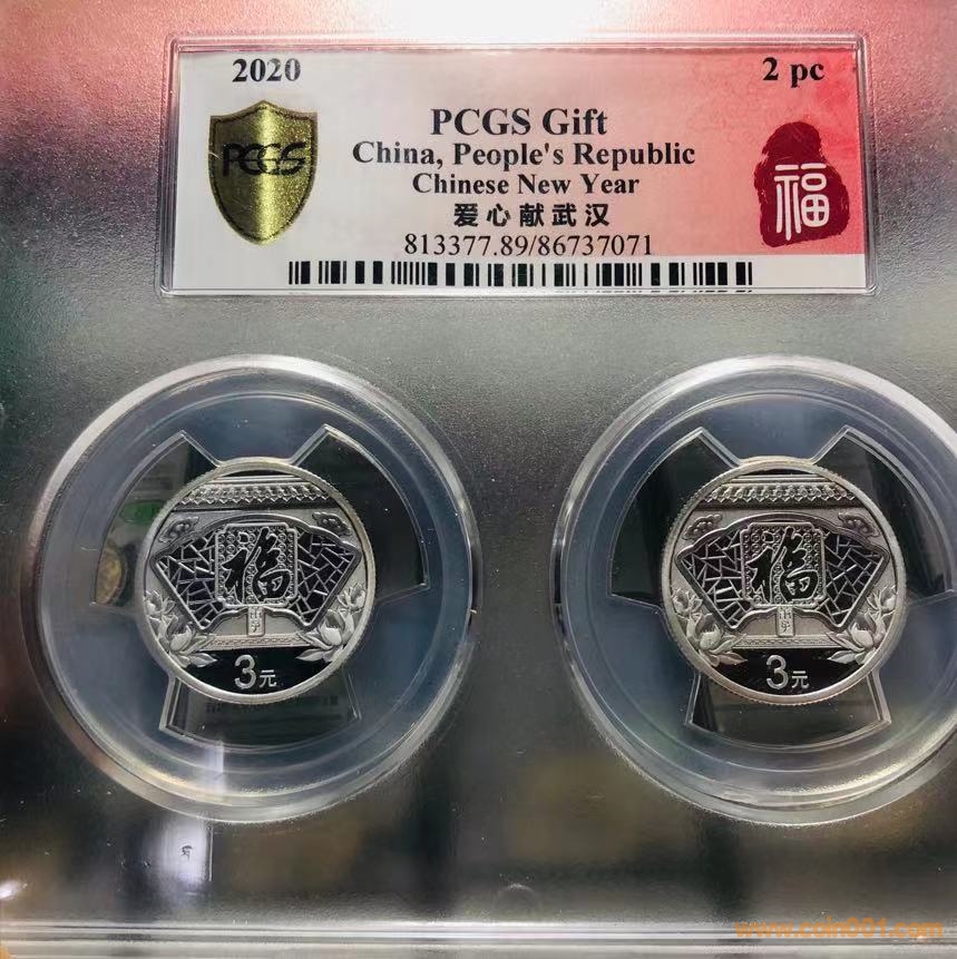 2020年福字銀幣PCGS雙枚裝2020年武漢新冠肺炎病毒入侵,全城為抗擊病毒全面封鎖,PCGS公司特別定制了30套雙枚裝2020年8克福字銀幣大盒裝 <<愛心獻(xiàn)武漢>>非常稀少,具有非常高的歷史收藏價(jià)值。金幣總公司原始包裝盒,收藏證書2張連號(hào)。