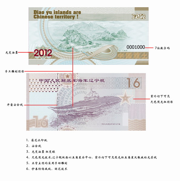 出售釣魚島測試鈔