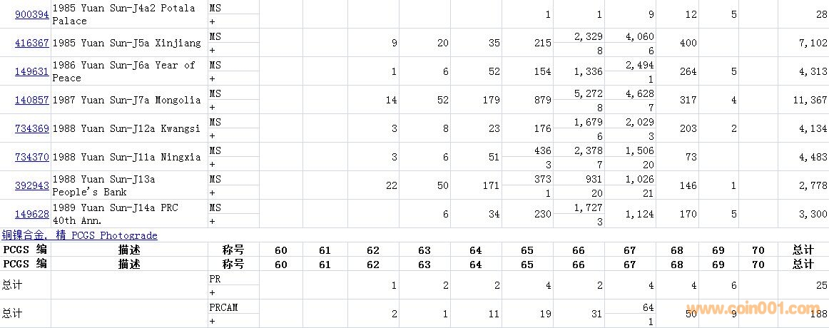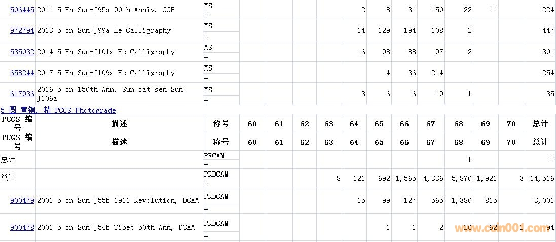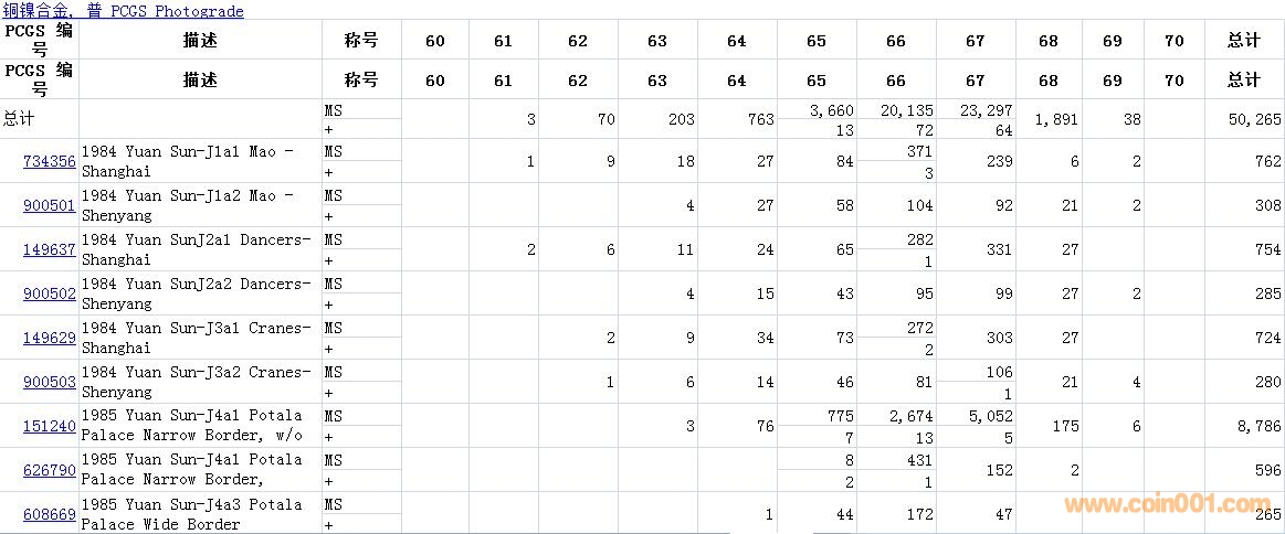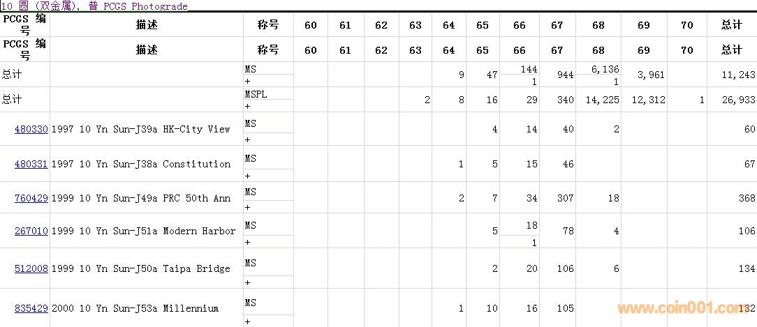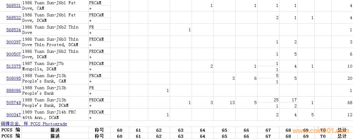 PCGS硬幣評(píng)級(jí)數(shù)量報(bào)告( ..
