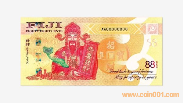 斐濟儲備銀行發(fā)行印有中國財神爺圖像的88斐濟分紀念紙幣