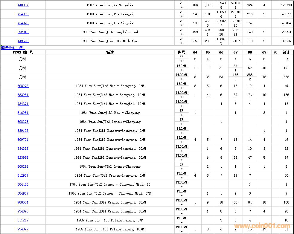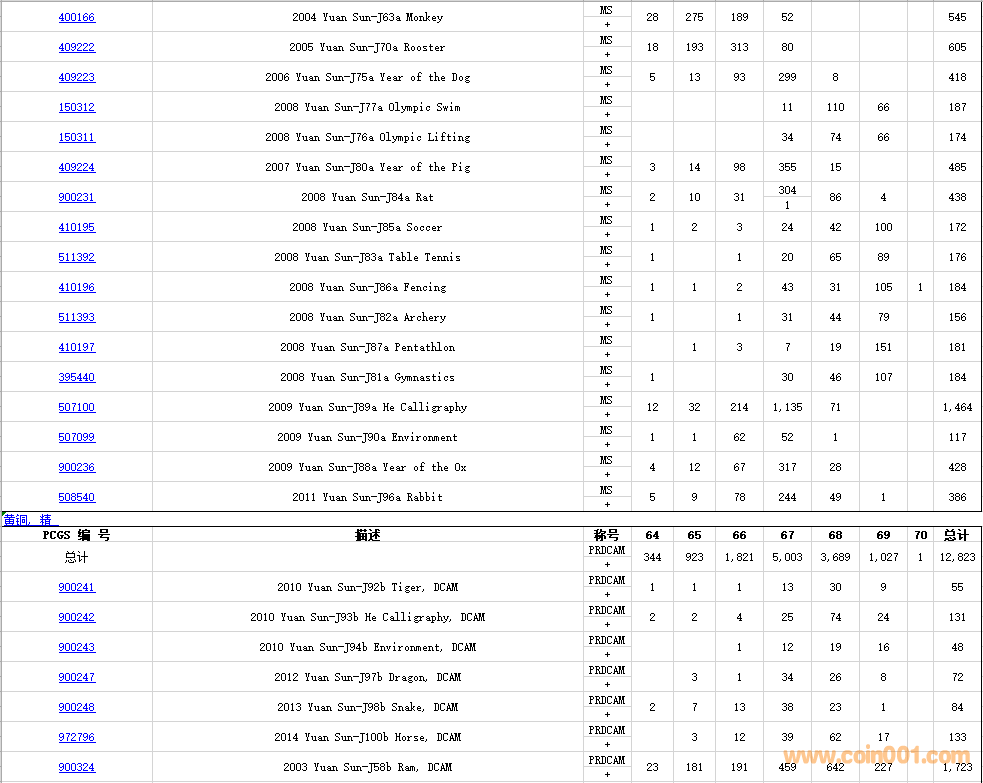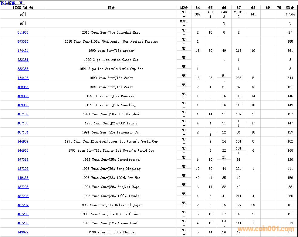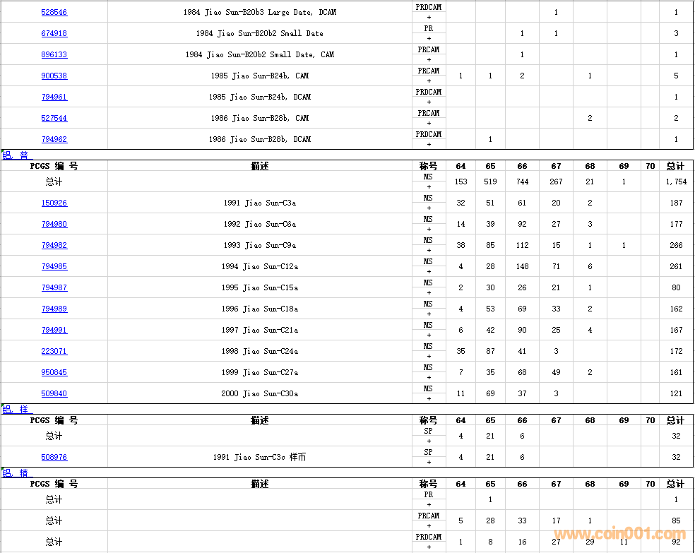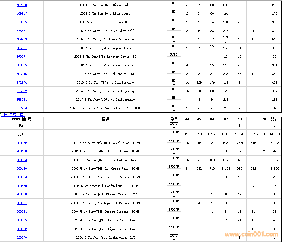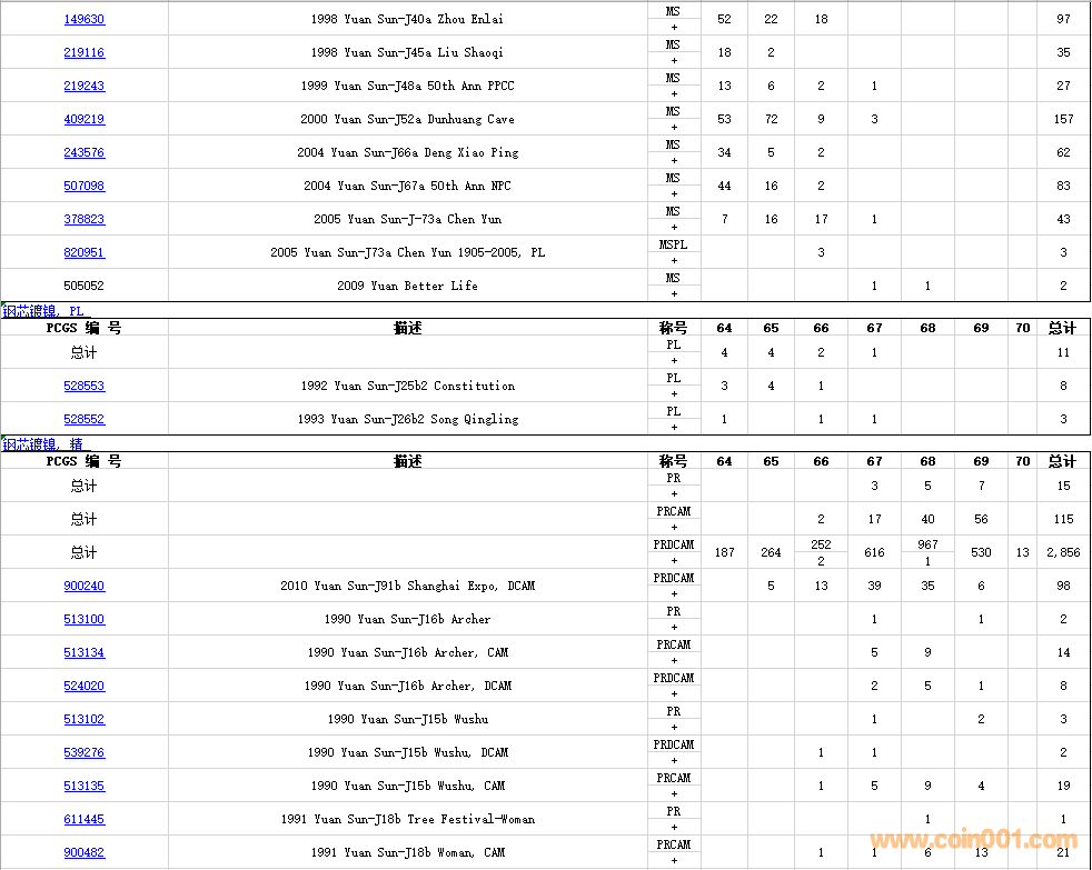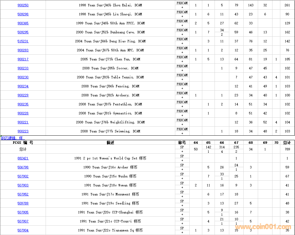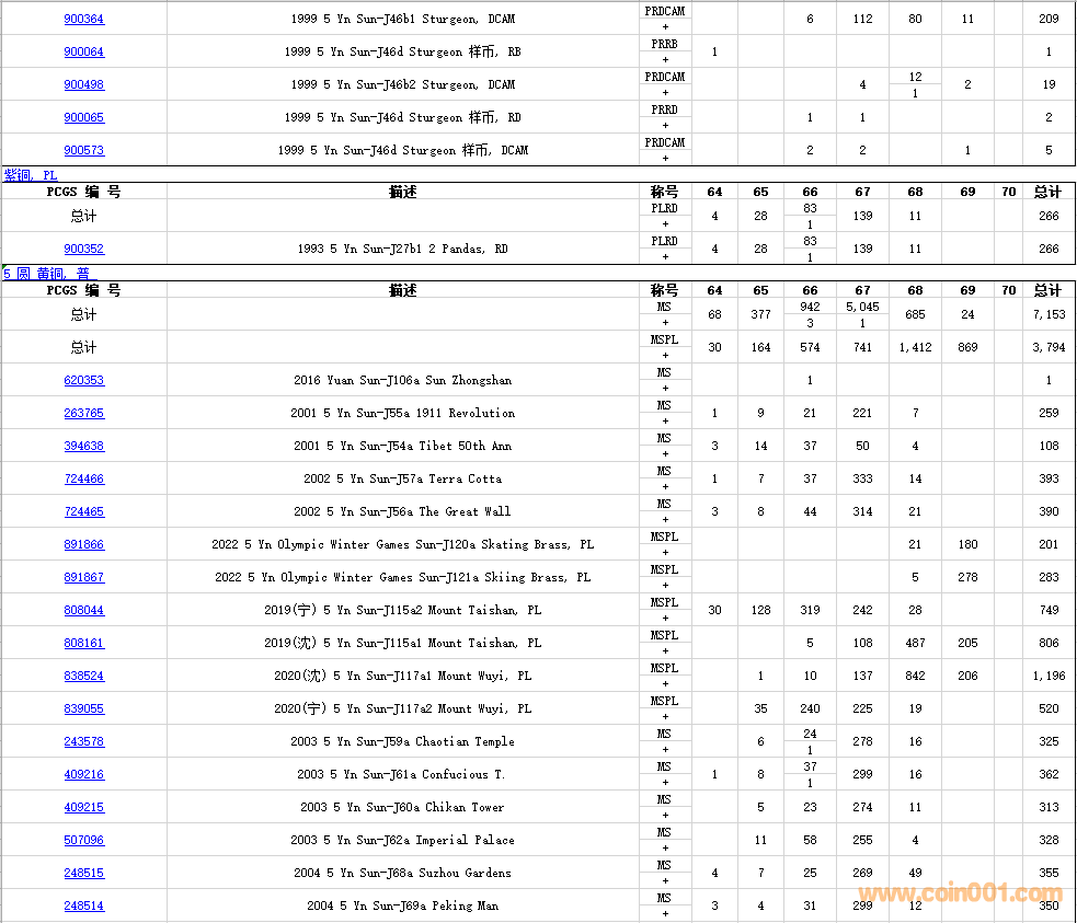 PCGS硬幣評(píng)級(jí)數(shù)量報(bào)告( ..