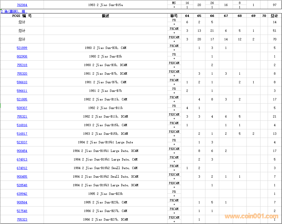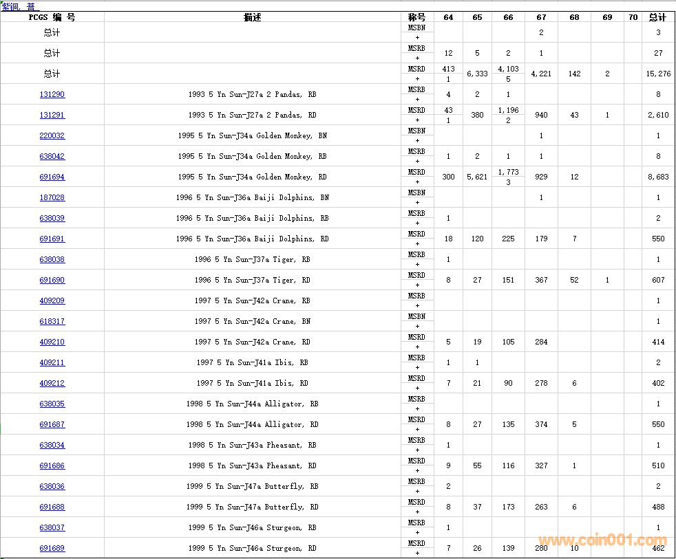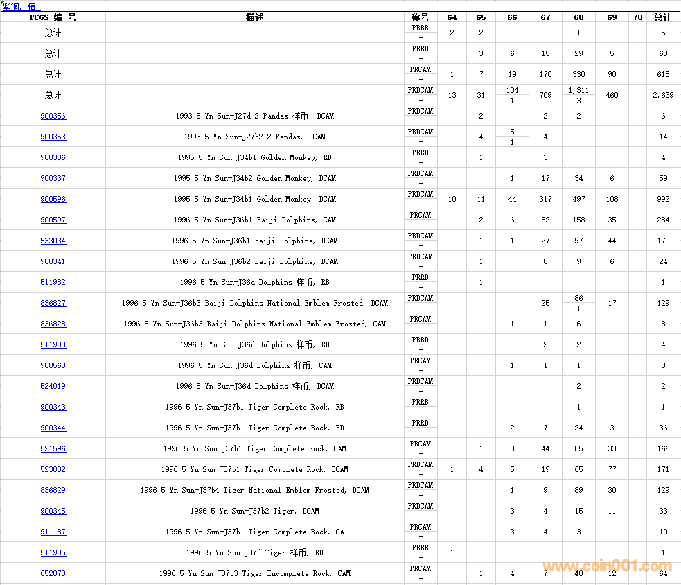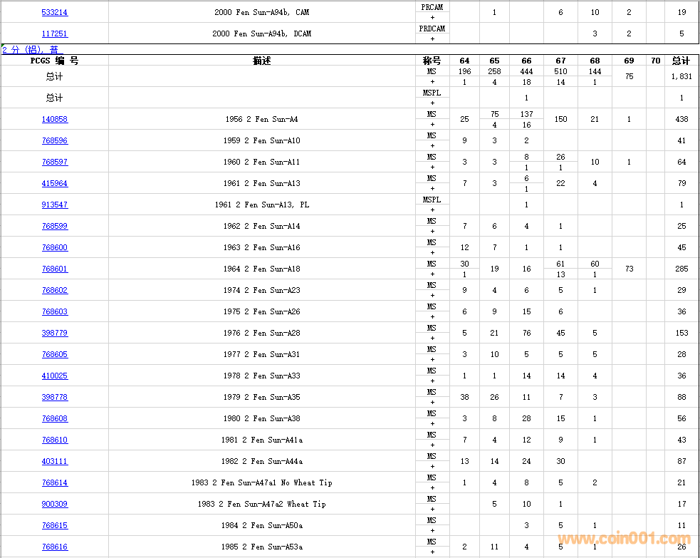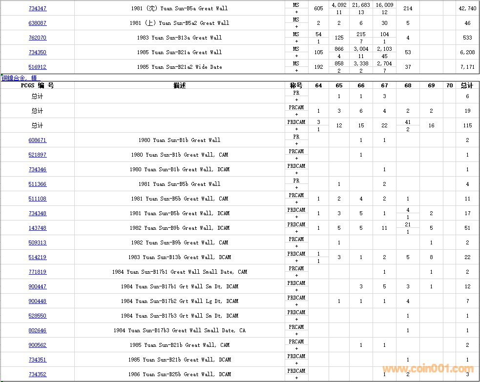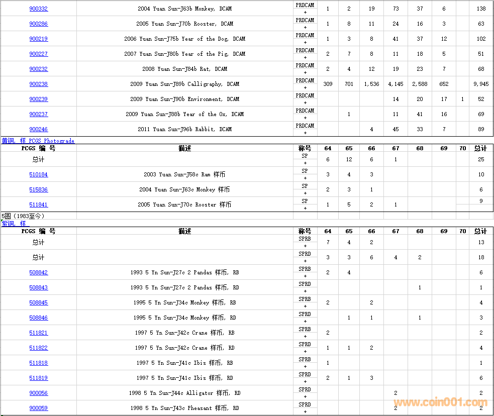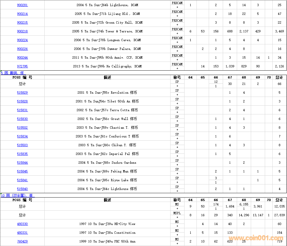 PCGS硬幣評(píng)級(jí)數(shù)量報(bào)告( ..