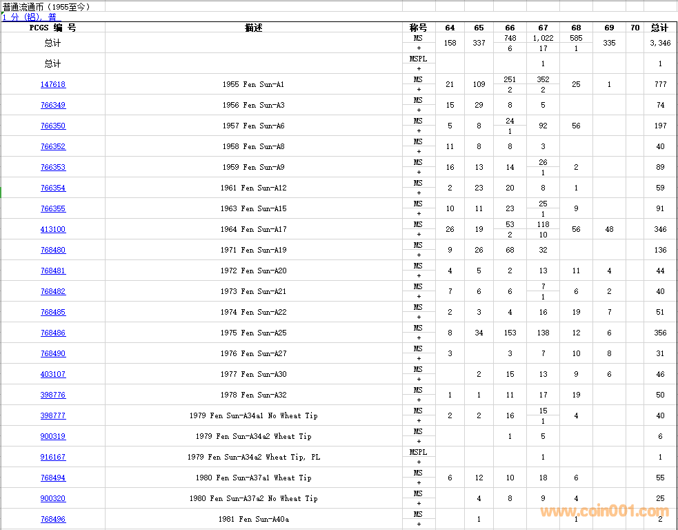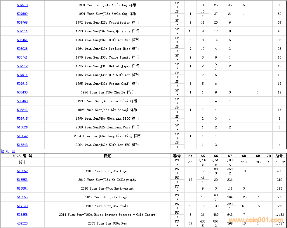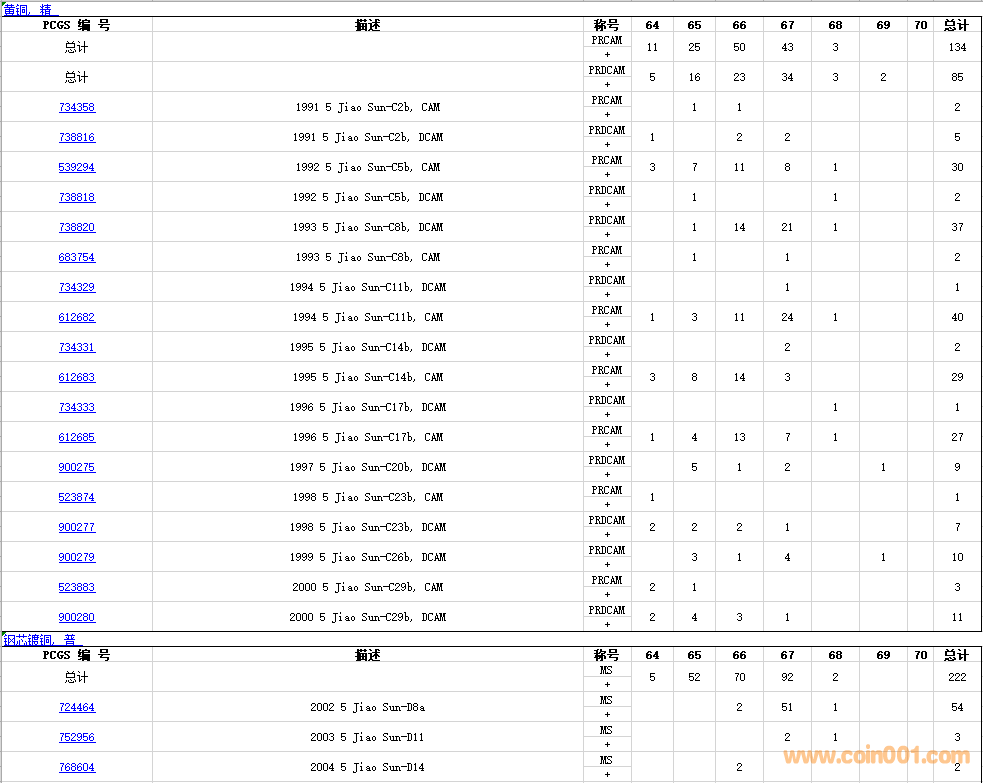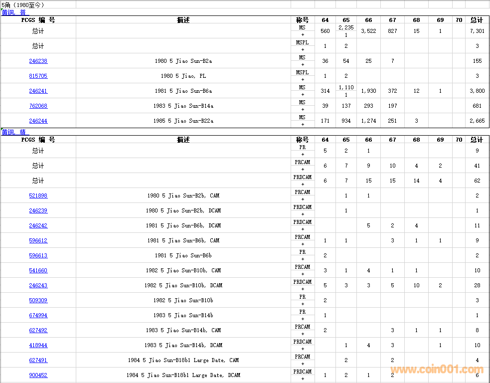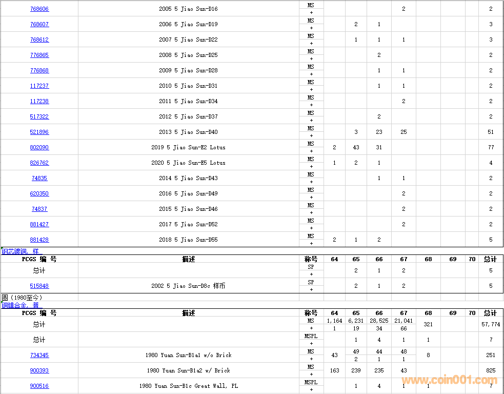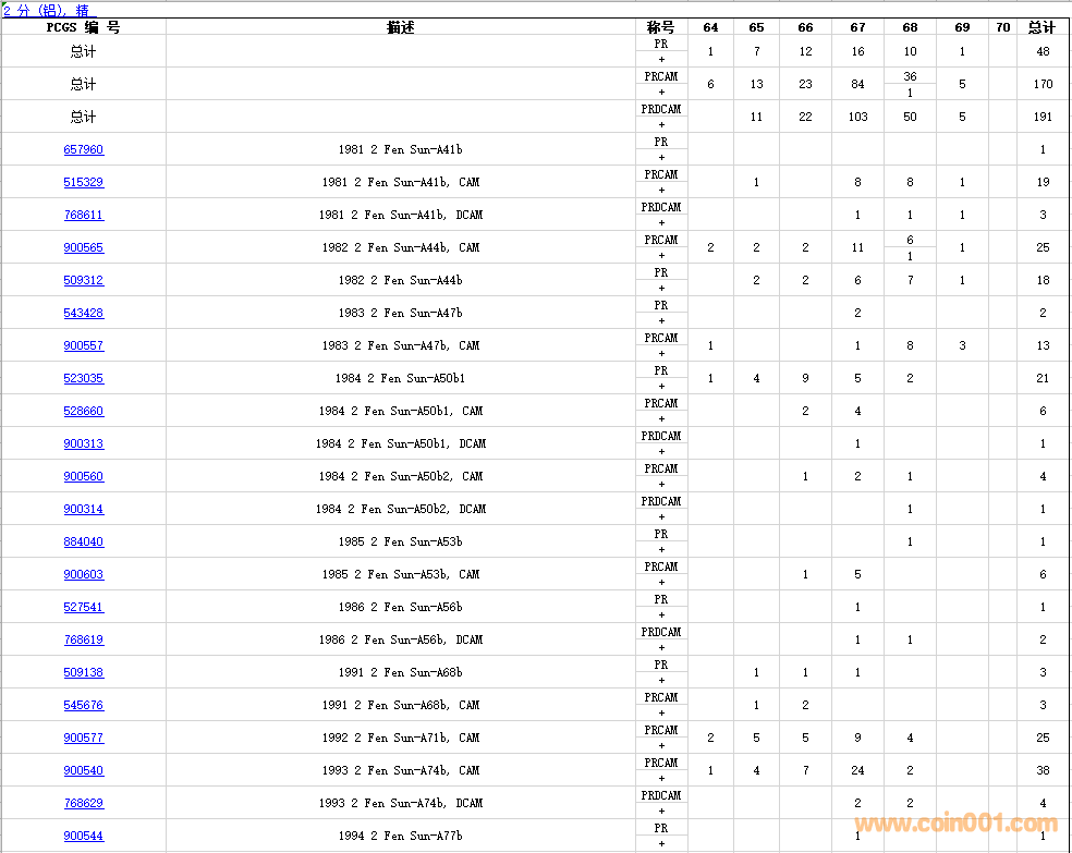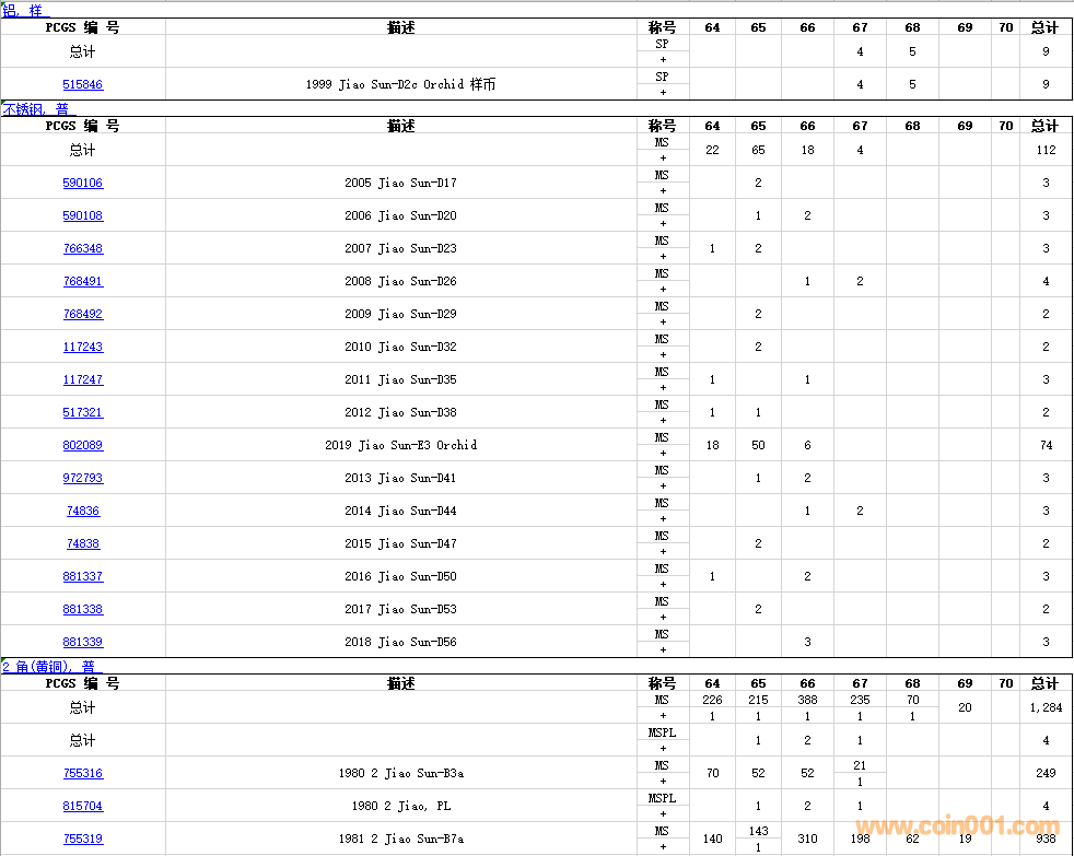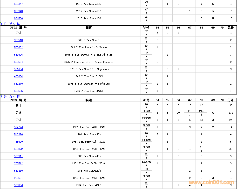 PCGS硬幣評(píng)級(jí)數(shù)量報(bào)告( ..