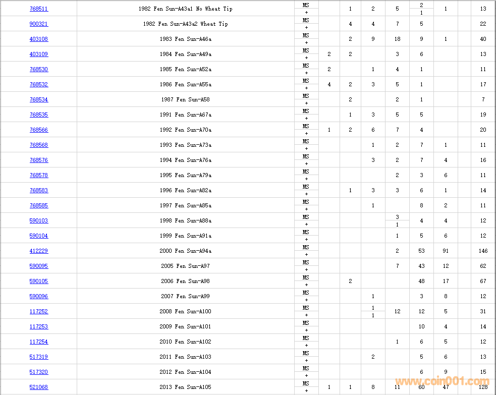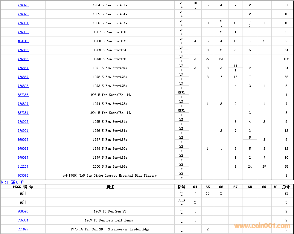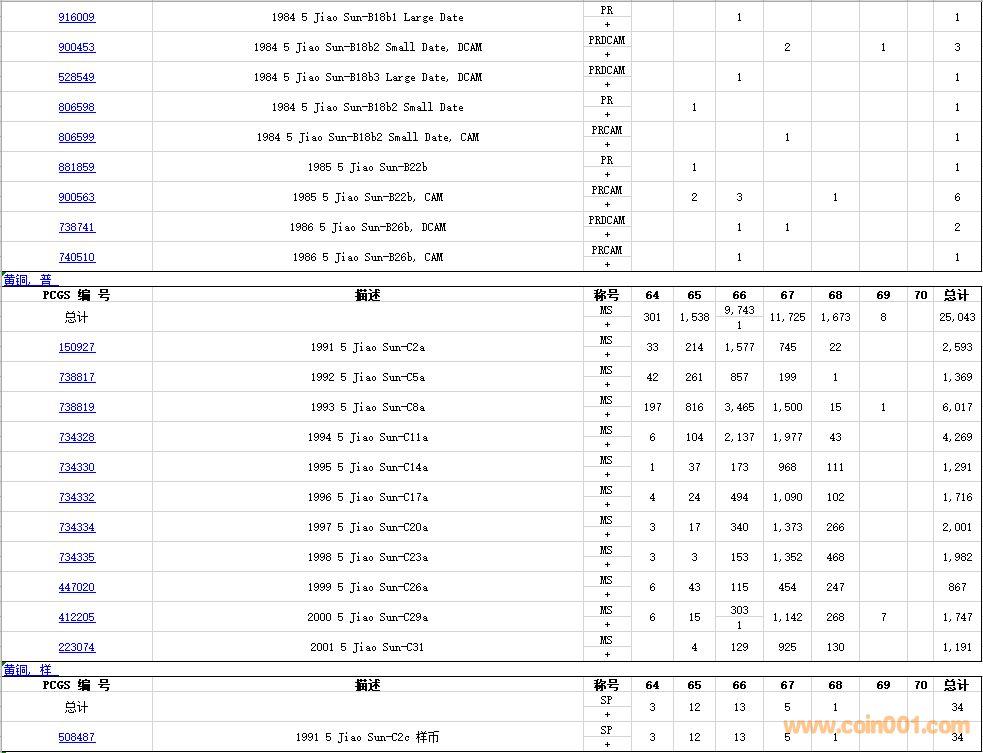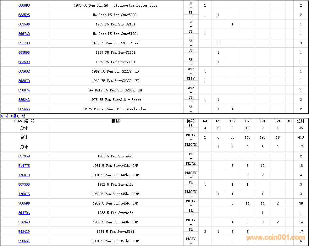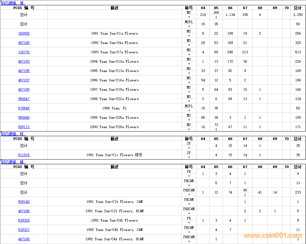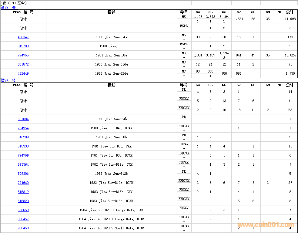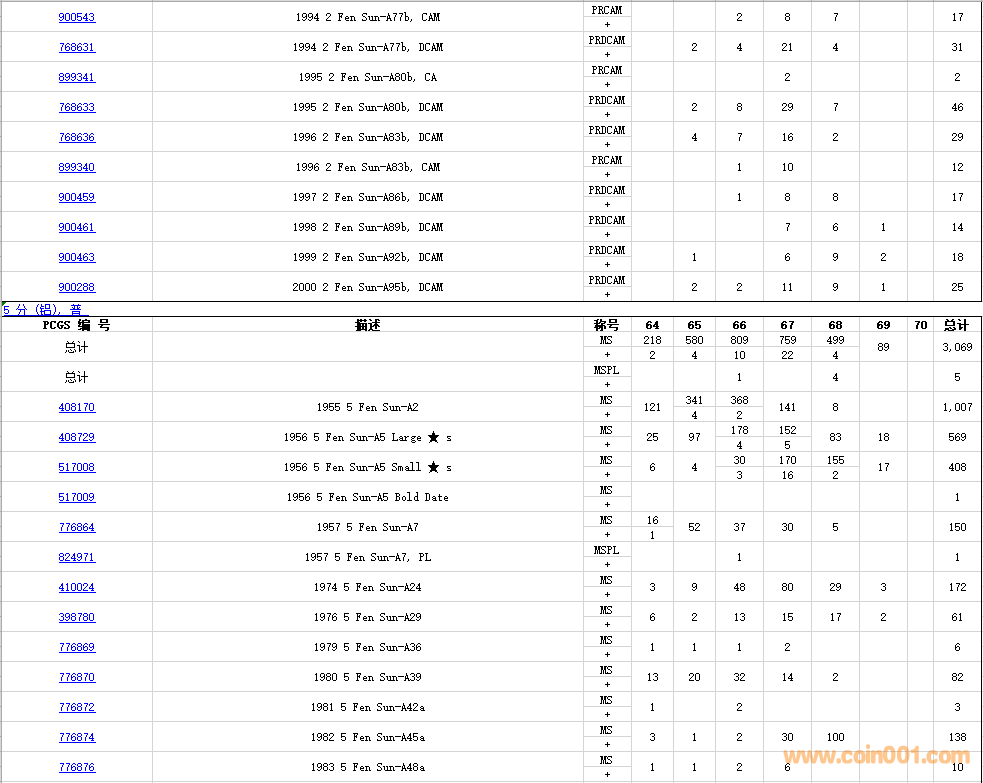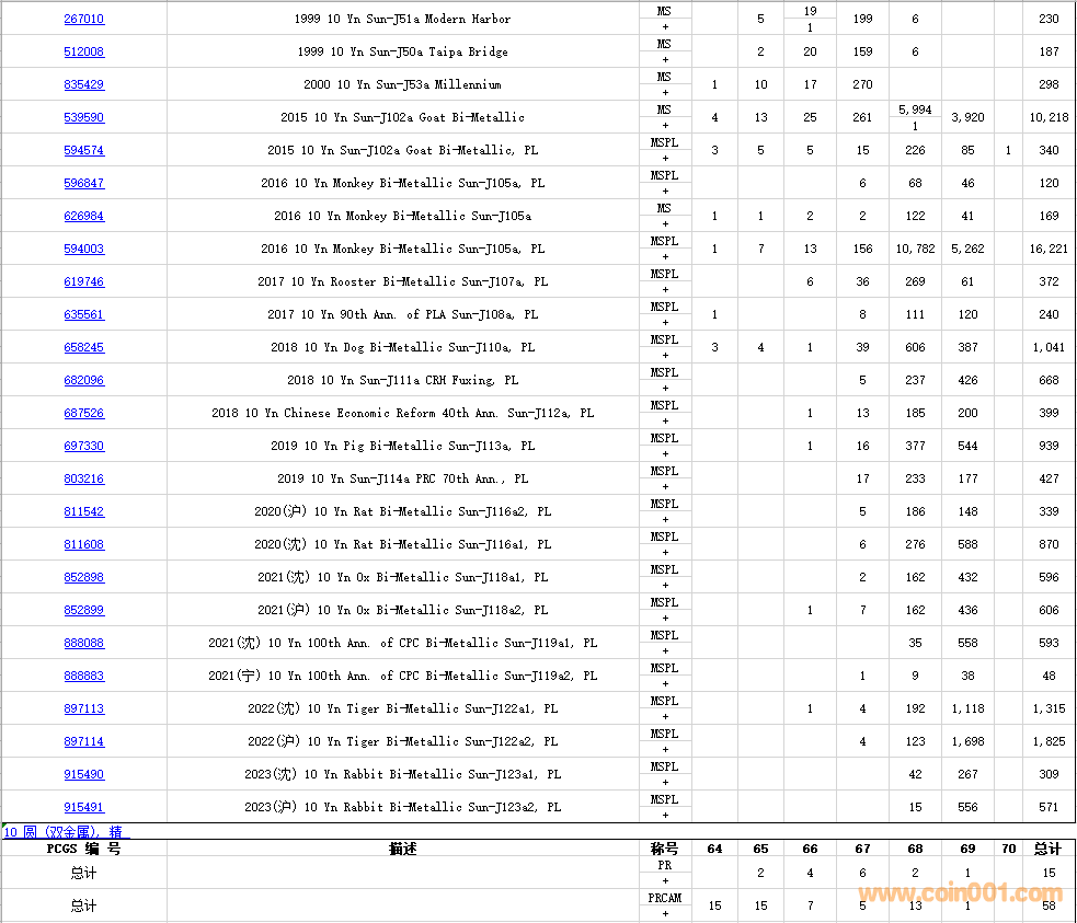 PCGS硬幣評(píng)級(jí)數(shù)量報(bào)告( ..