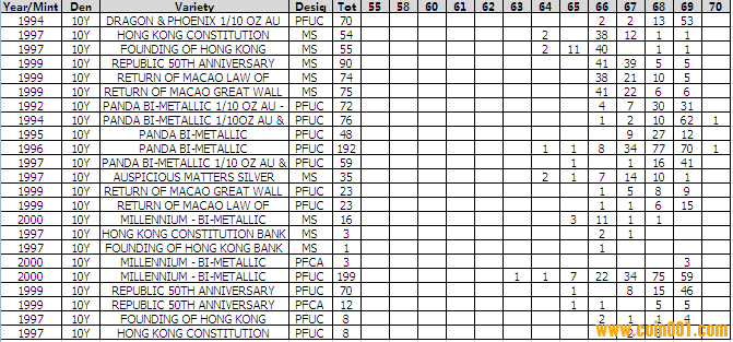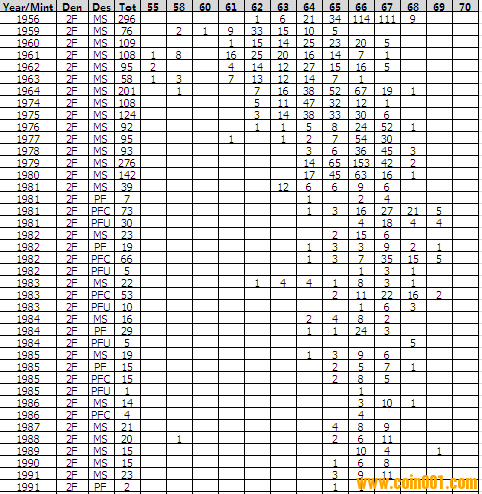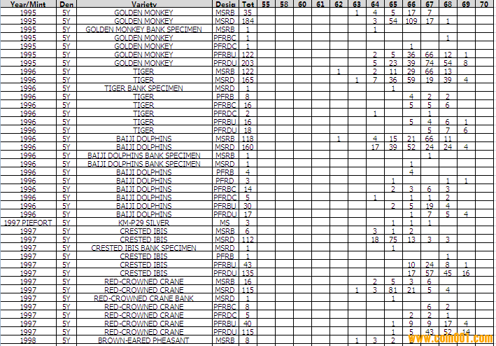 NGC硬幣評級分數(shù)分布 ..