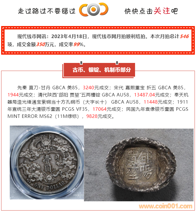 現(xiàn)代錢幣網(wǎng)418月拍綜述
