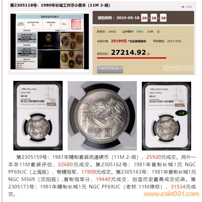 現代錢幣網518月拍綜述