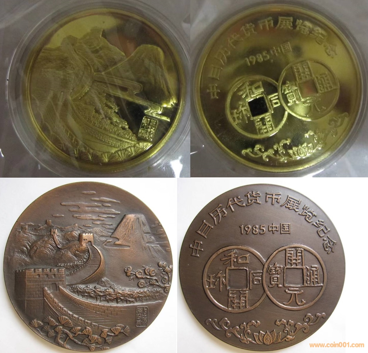 1985年制造,上幣發(fā)行。正面為長(zhǎng)城,富士山,反面為開(kāi)元通寶及日本貨幣。