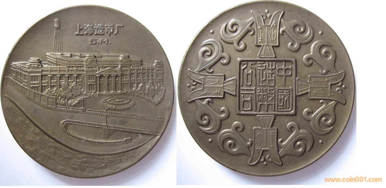 1979年制造,黃銅55mm,上幣發(fā)行。正面為上幣廠房,反面為古幣。此章當(dāng)時(shí)作為禮品回贈(zèng)給日本大阪造幣廠,未公開(kāi)發(fā)行,是新中國(guó)歷史上第一枚大銅章。據(jù)說(shuō)后期造幣廠又重新制造過(guò)這一枚大銅章。