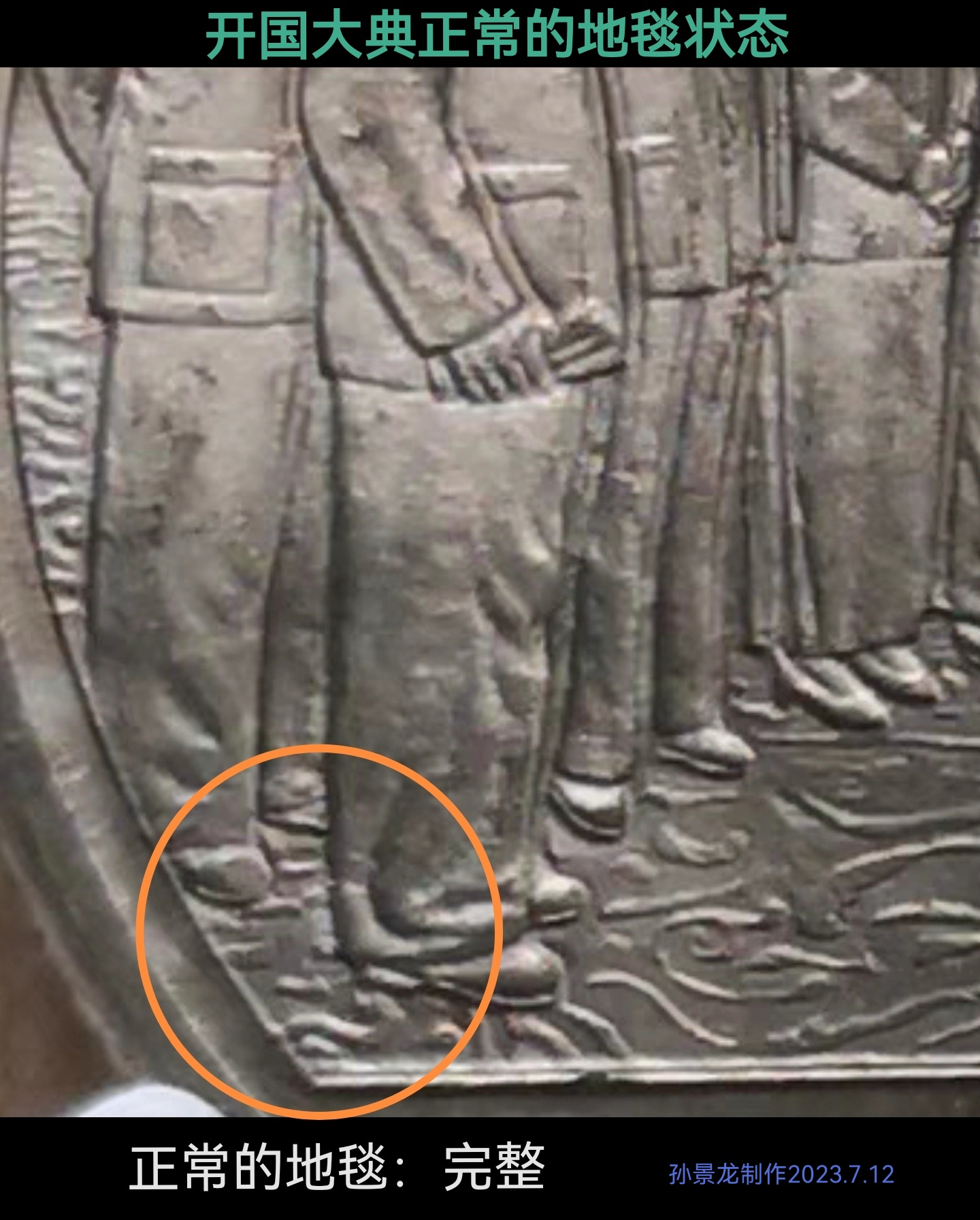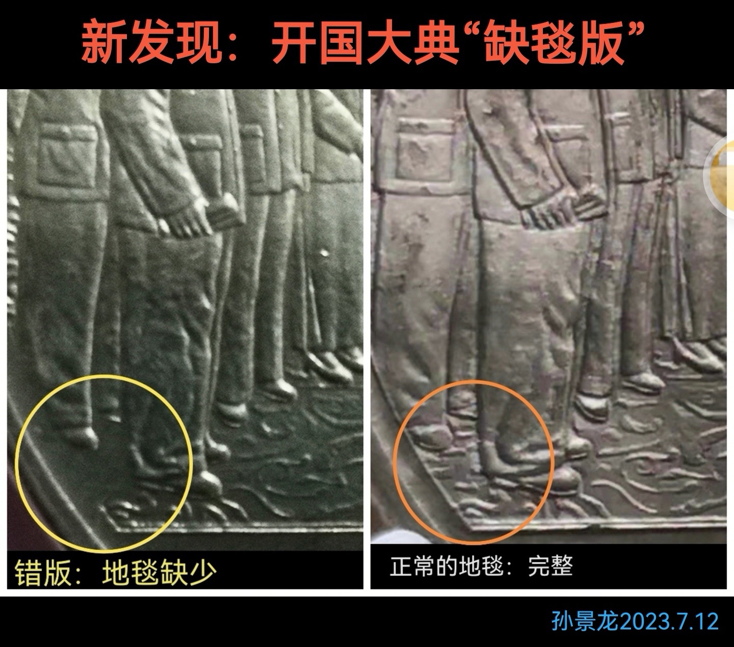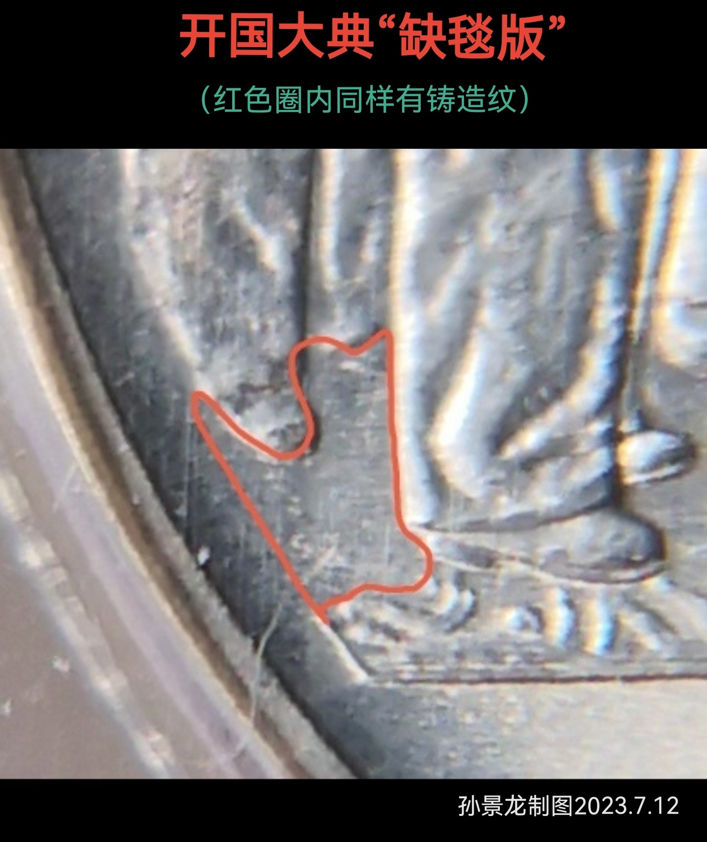 這次我發(fā)現(xiàn)的開國大典缺毯版,應屬于模具損傷。