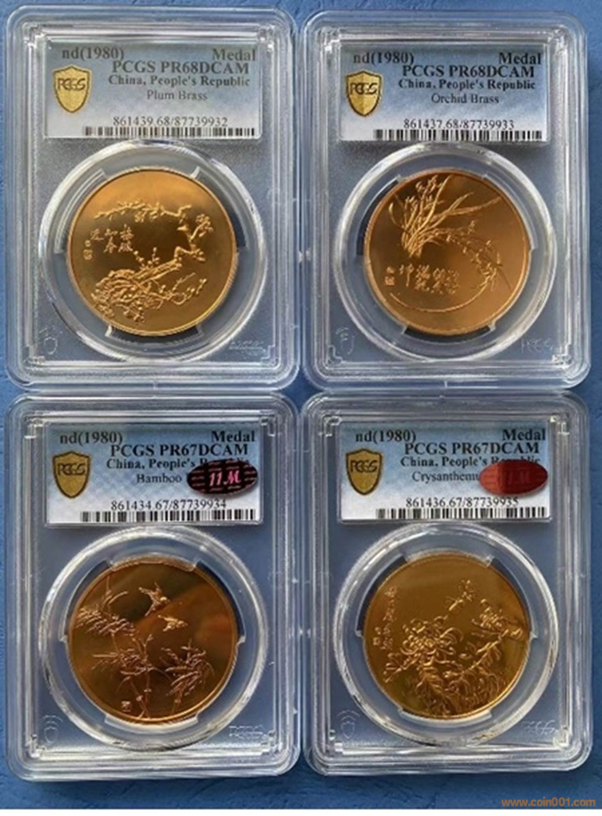 ???? 梅蘭竹菊是中國(guó)畫中常用的題材,作者白文均早年習(xí)國(guó)畫,他也愛畫梅蘭竹菊,因此梅蘭竹菊便成了他處女作的首選。雕刻此章時(shí)作者才剛剛?cè)胄?,他在雕刻時(shí)依照的是傳統(tǒng)雕刻手法,雕刻痕跡不是很明顯,但仔細(xì)觀察還能看出手雕的痕跡。如“梅”章的樹干,“蘭”章的葉面,“竹”章的小鳥,“菊“章的草地等。整體來說還是體現(xiàn)了手雕的質(zhì)感。”梅蘭竹菊“四幅畫均為作者的原創(chuàng)作品,題字書法也是雕刻師本人所書寫。背面搭配的是中國(guó)的傳統(tǒng)題材”福祿壽喜“它們分別表達(dá)出了老百姓對(duì)”幸福,升官,長(zhǎng)壽,喜慶“四個(gè)方面的人生追求,表達(dá)了百姓對(duì)生命的憧憬,對(duì)美滿生活的向往,對(duì)自身崇高的追求。四面均采用了對(duì)稱構(gòu)圖,和正面形成了對(duì)比,像一種圖騰。一種信仰,一種符號(hào)化了的人生目標(biāo)。章中還采用了幣的元素,即在此章的周邊打了一圈圓點(diǎn),這樣就似乎給章提升了一個(gè)檔次。”祿“的四角花飾和”喜“的鴛鴦上可看出手雕痕跡·。正面屬“陽春白雪“背面是”下里巴人“,它們的受眾面很廣。該套章如此構(gòu)思在歷來的章牌中并不多見。背面只有”祿“打上了”中國(guó)造幣公司“的落印款。