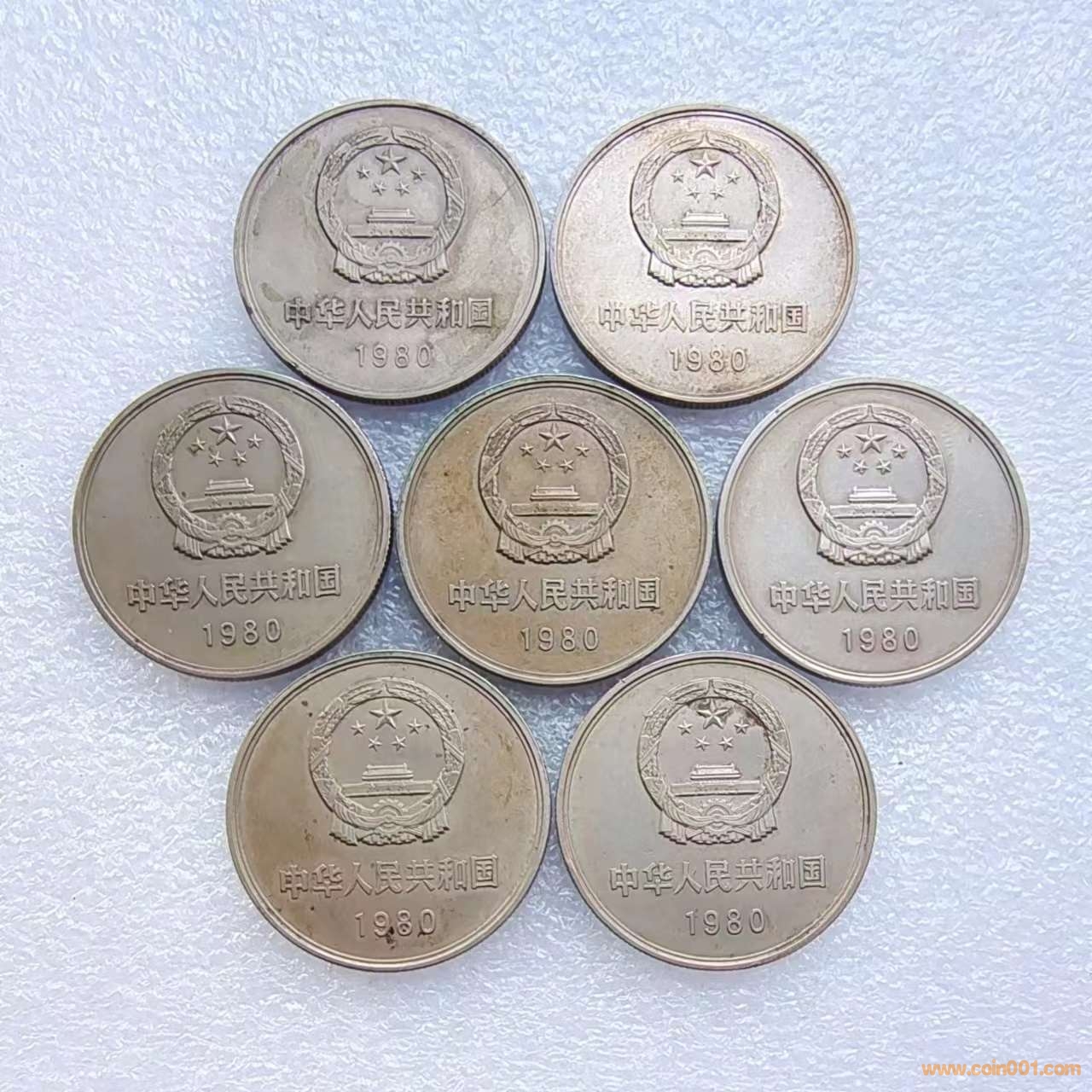 長城幣1980年一元無磚版流通好品7枚