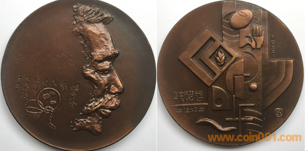 1981年制造,黃銅上色60mm上幣發(fā)行,發(fā)行量10枚內(nèi)。正面為孫中山,反面為黃花崗紀(jì)念碑。