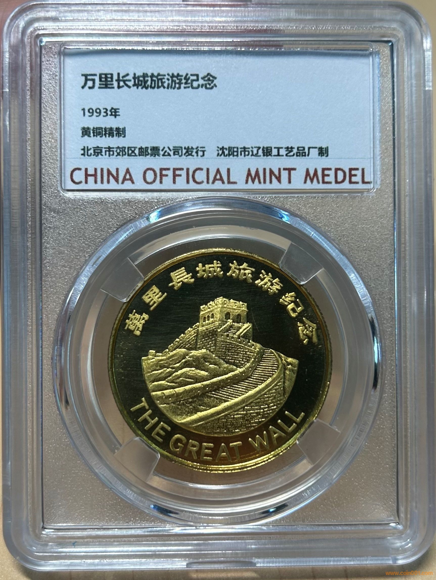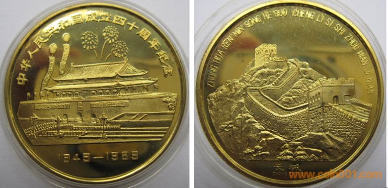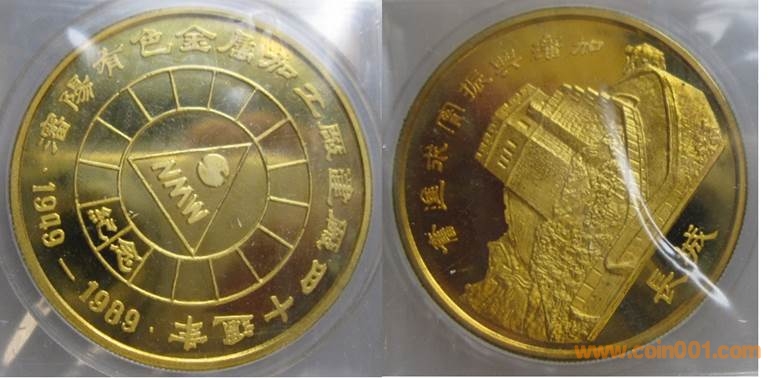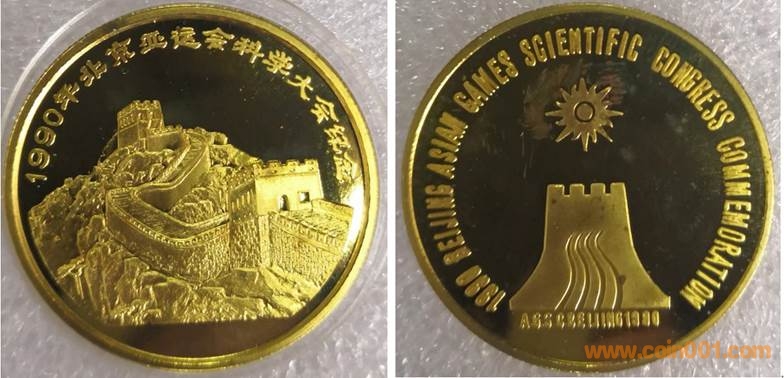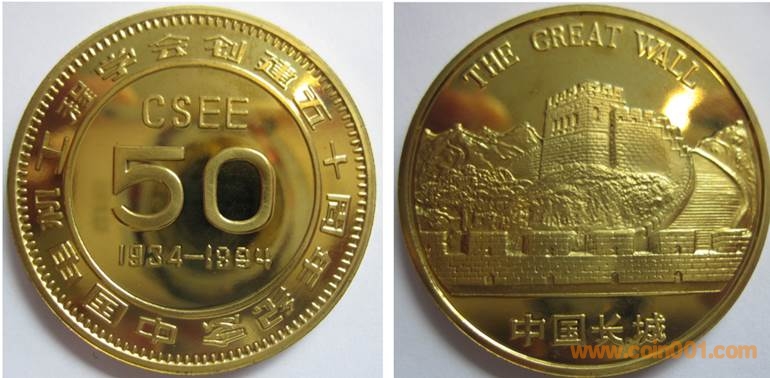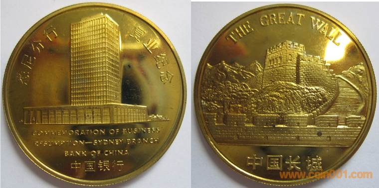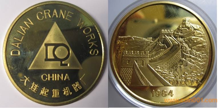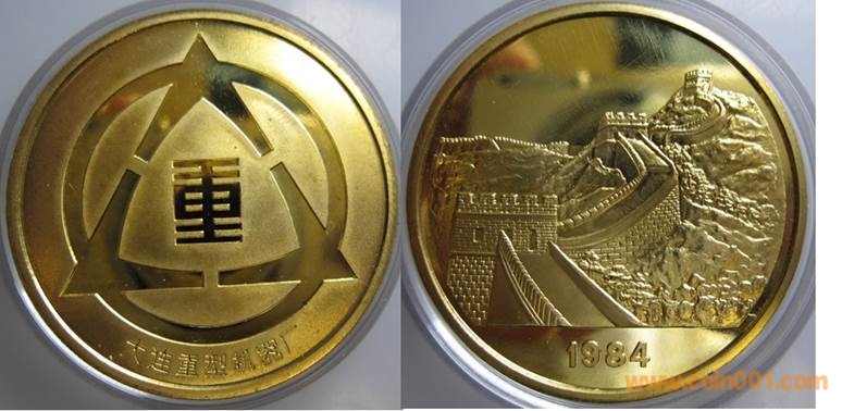 1984年制造,黃銅精制38.6mm上幣發(fā)行。正面為主題文字,反面為長城。