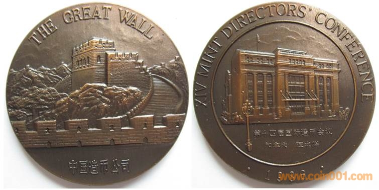 1986年制造,紫銅普制45mm,上幣發(fā)行,發(fā)行量72枚。正面為長城,反面為十四屆國際造幣會議大樓。參考價:4000-8000