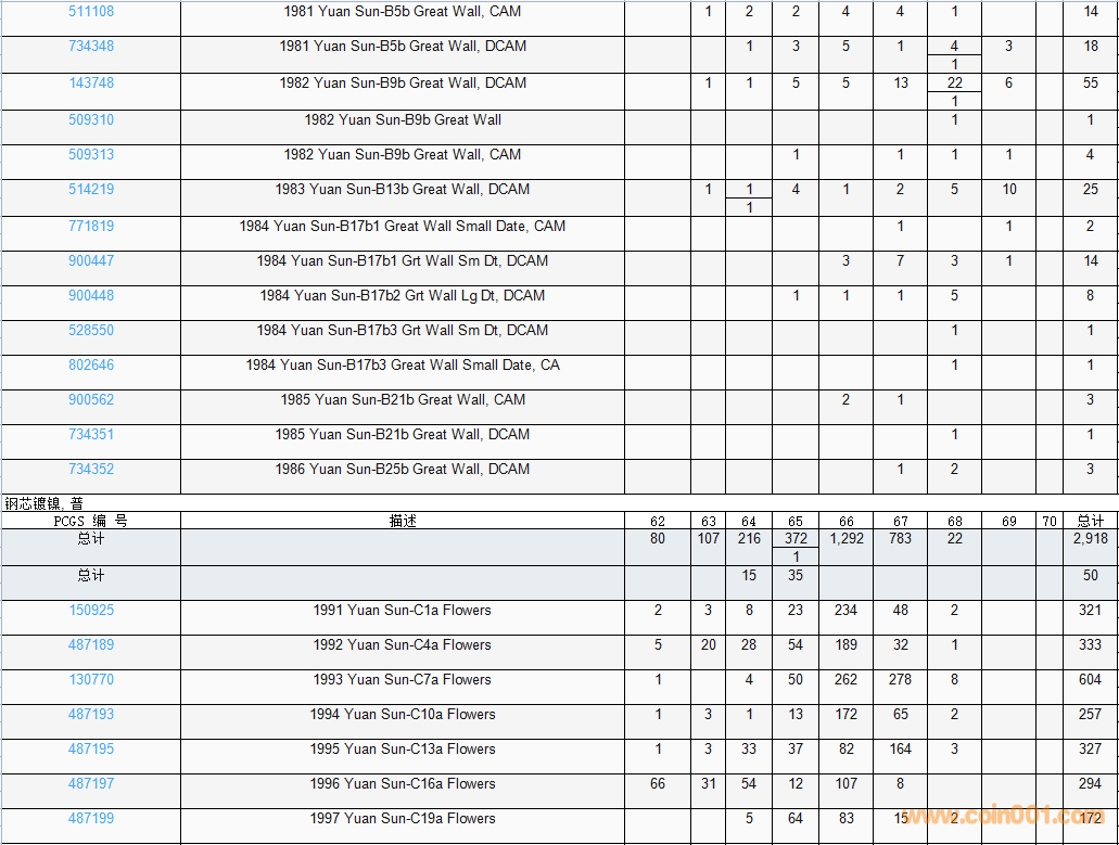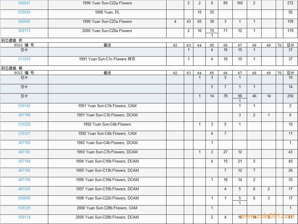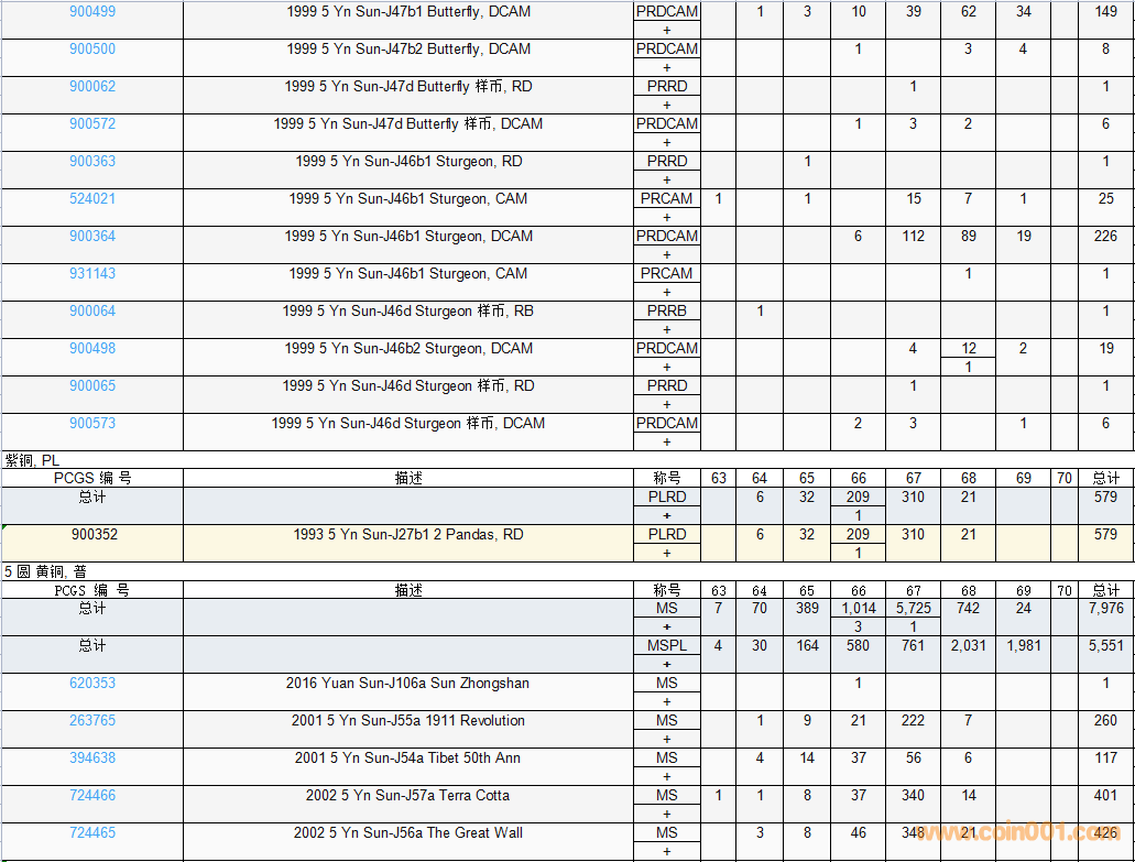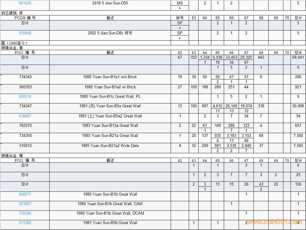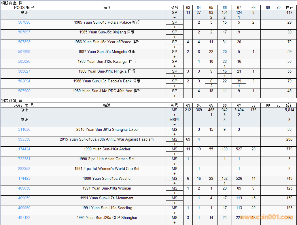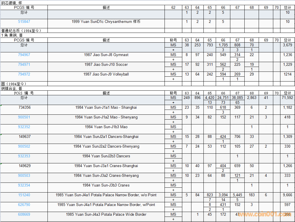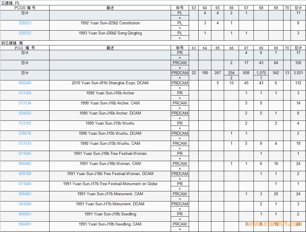 PCGS硬幣評級數(shù)量報告( ..