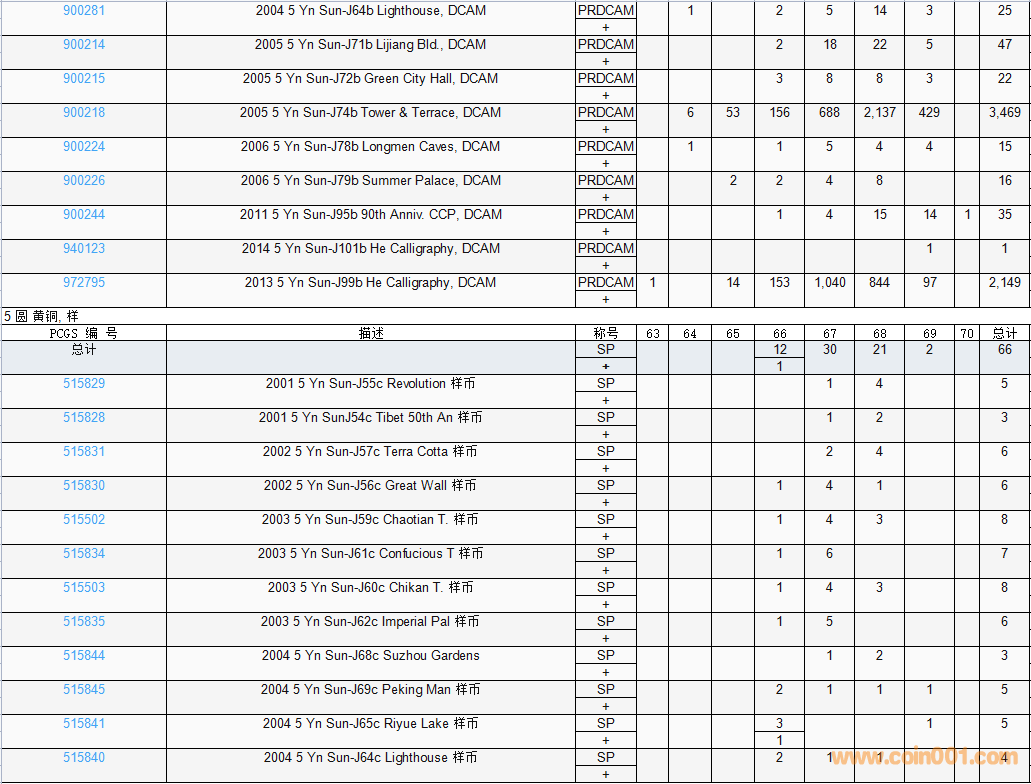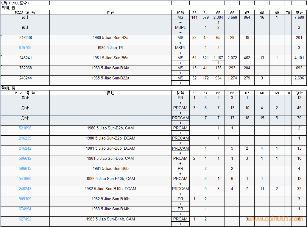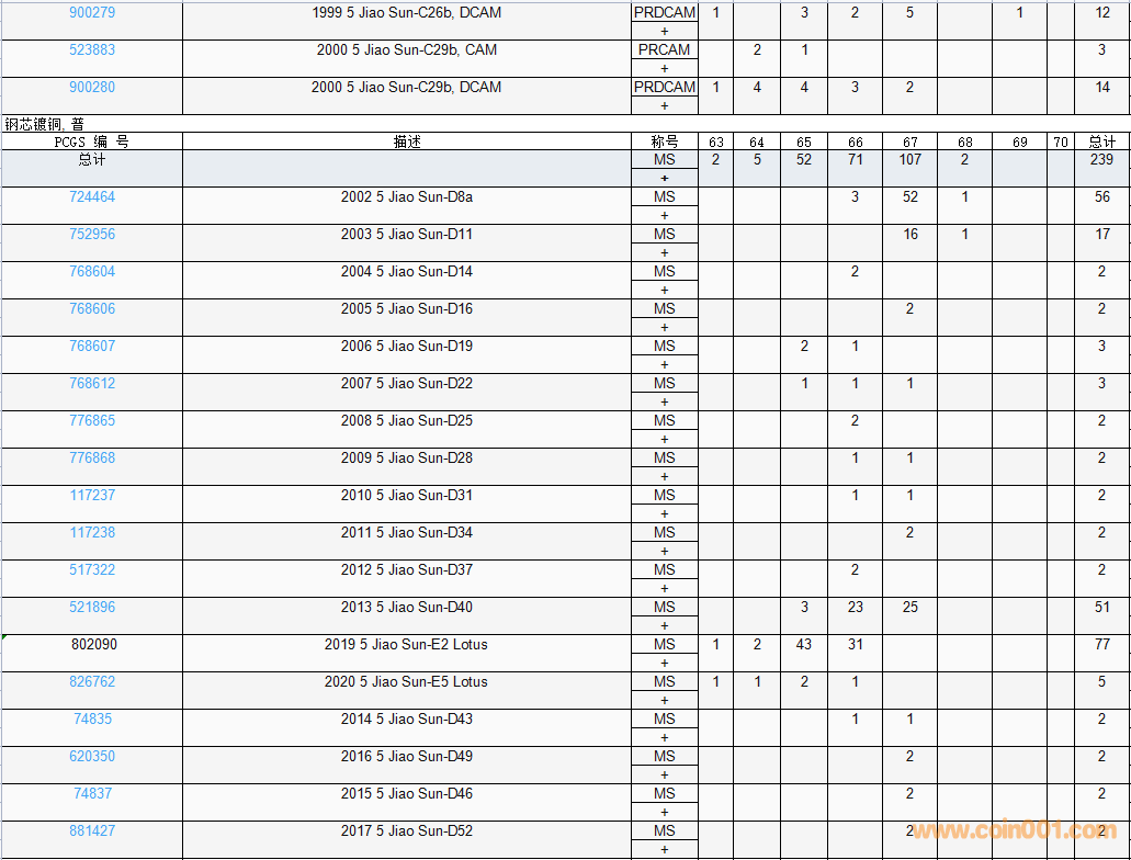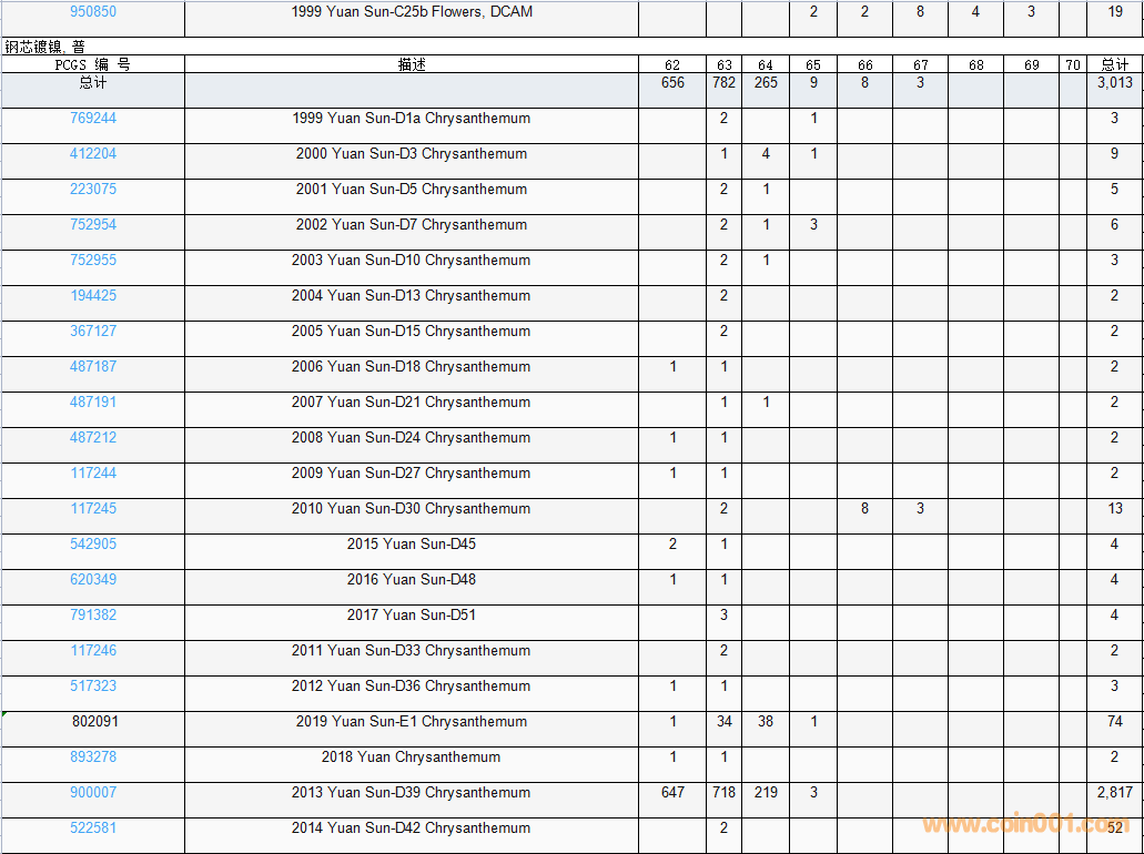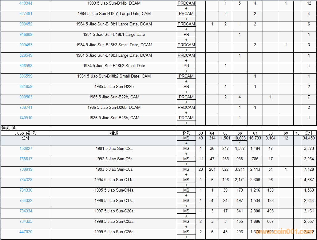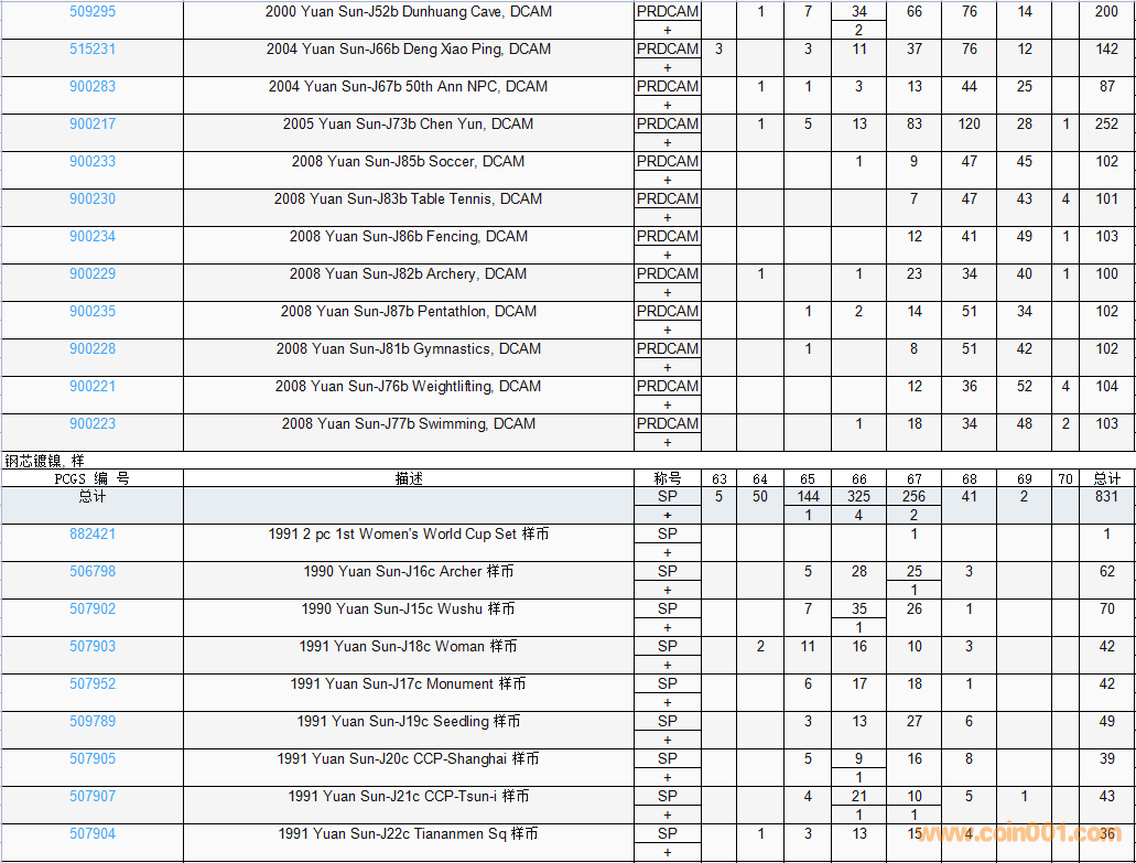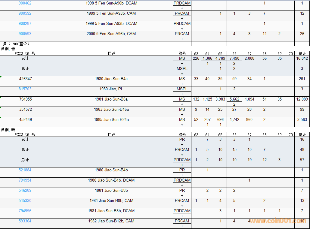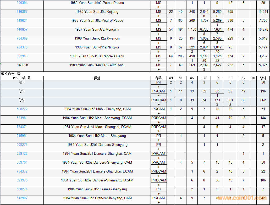 PCGS硬幣評級數(shù)量報告( ..