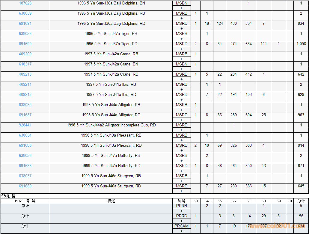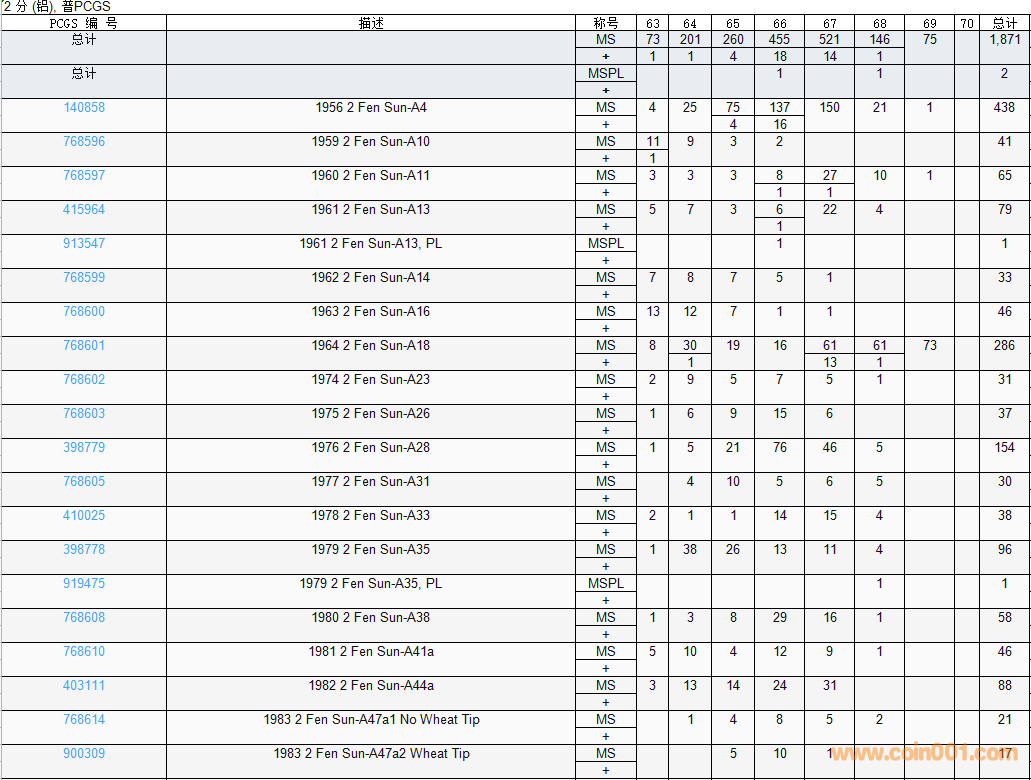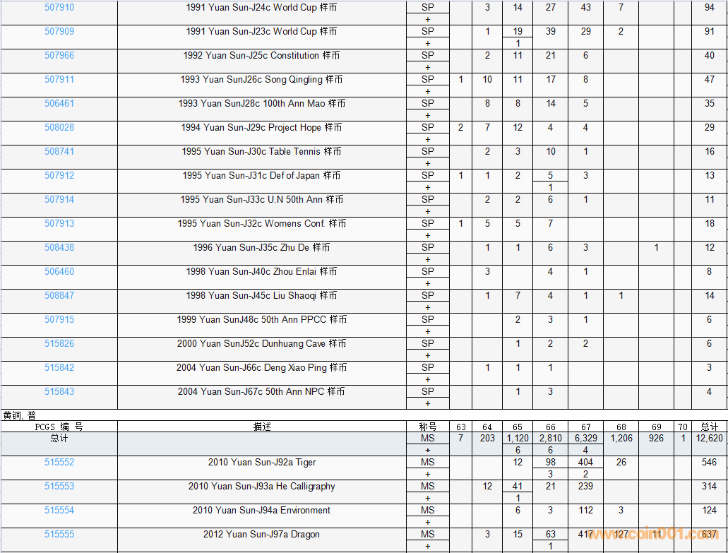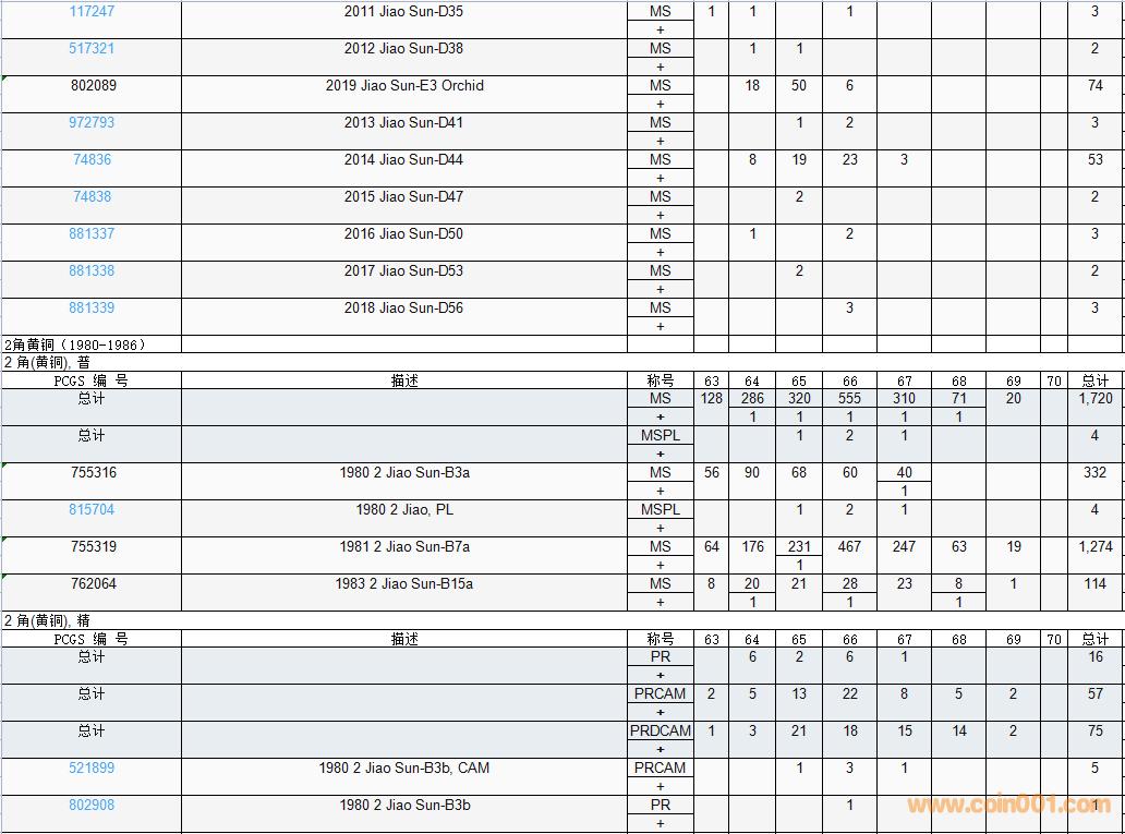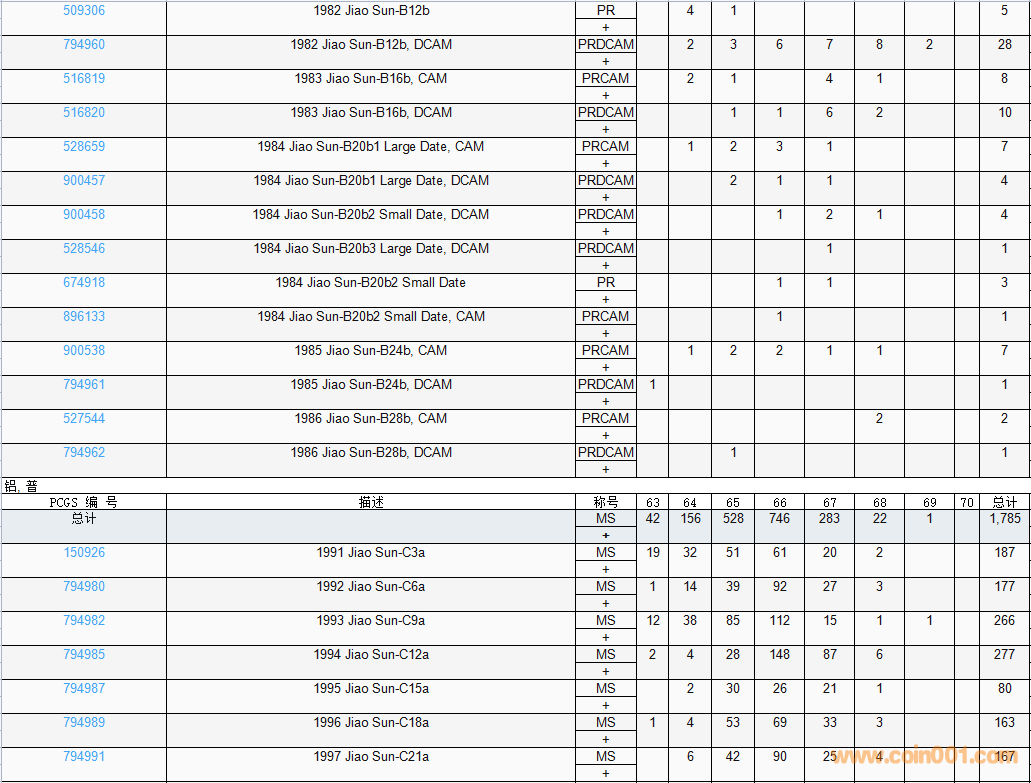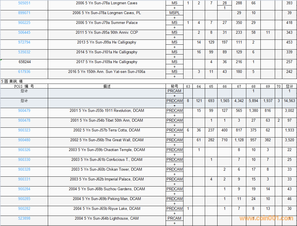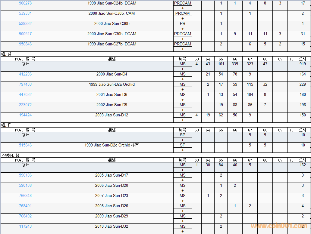 PCGS硬幣評級數(shù)量報告( ..