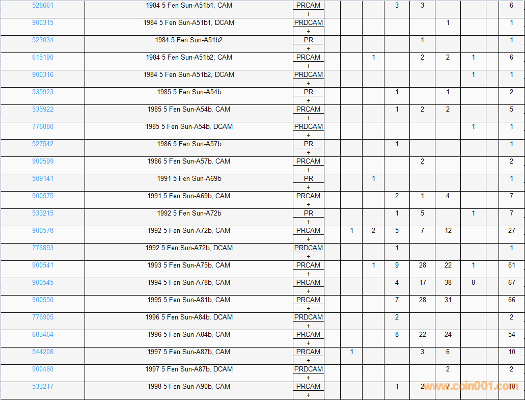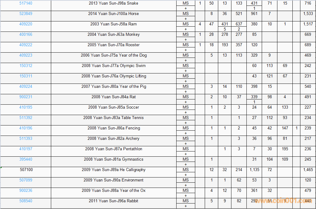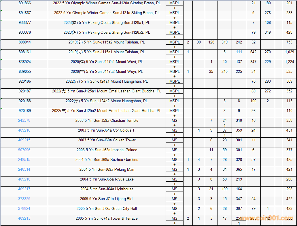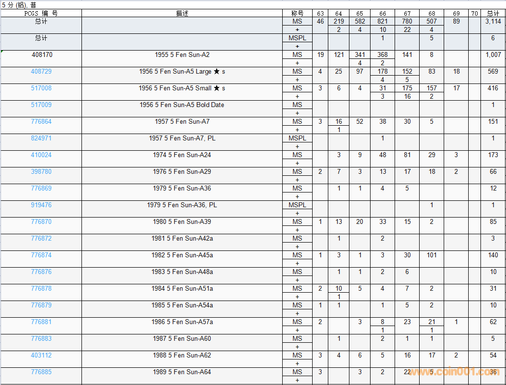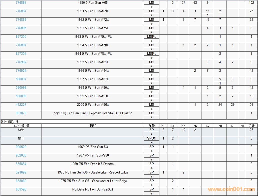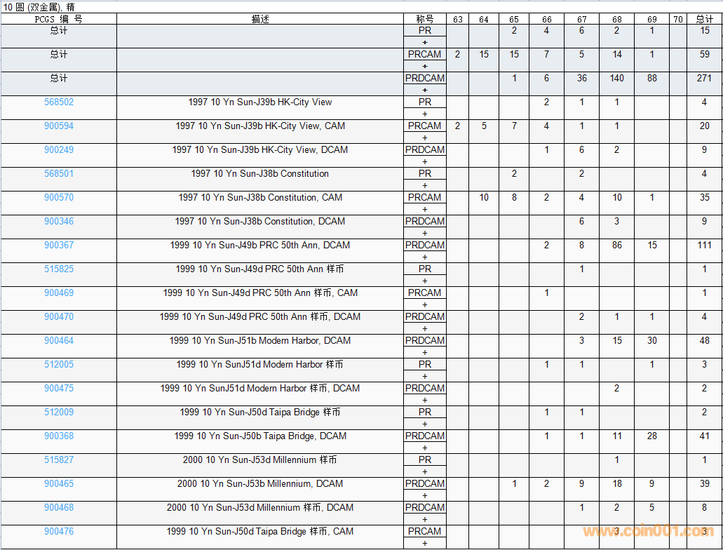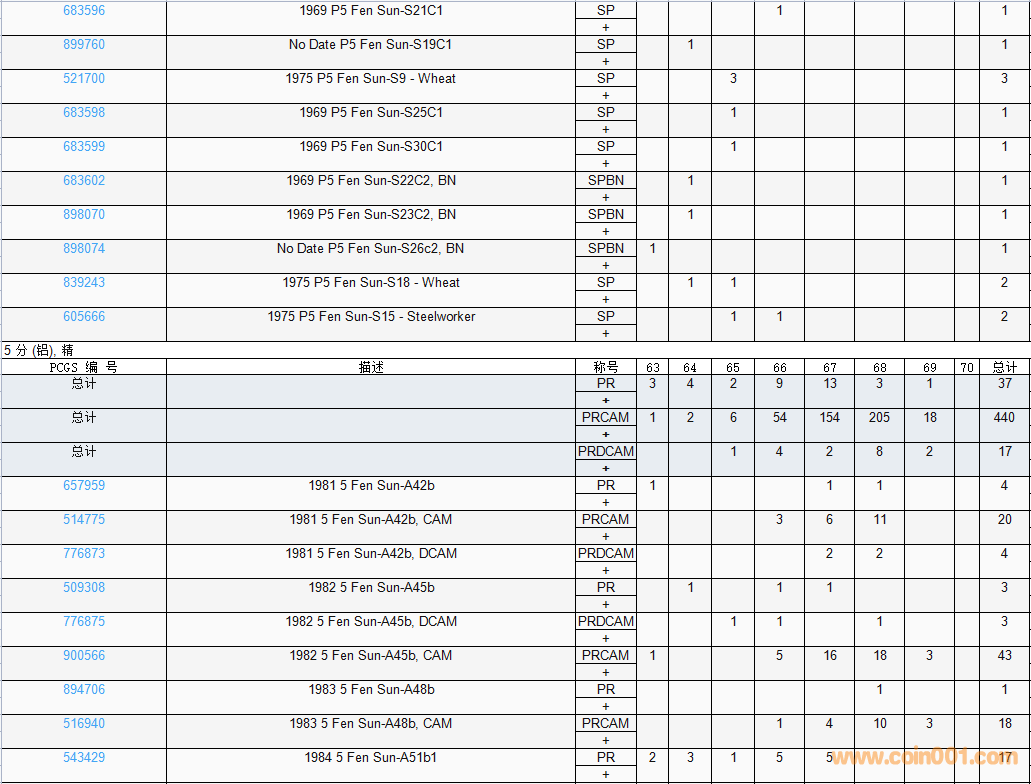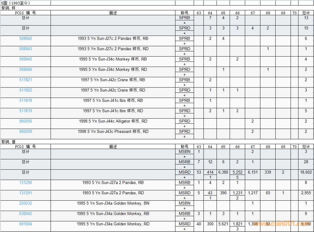 PCGS硬幣評級數(shù)量報告( ..