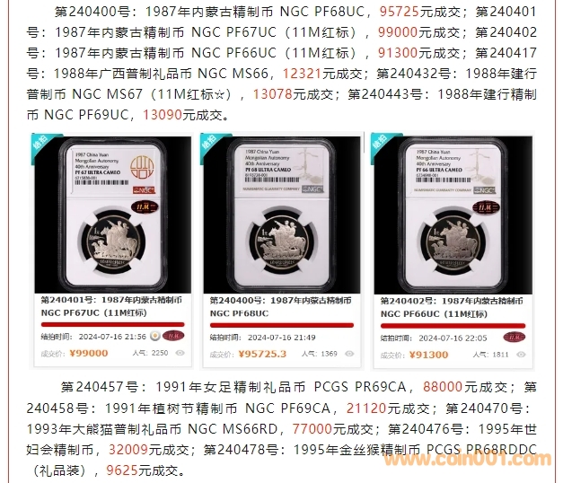 評級普通(精制)紀念幣交易
