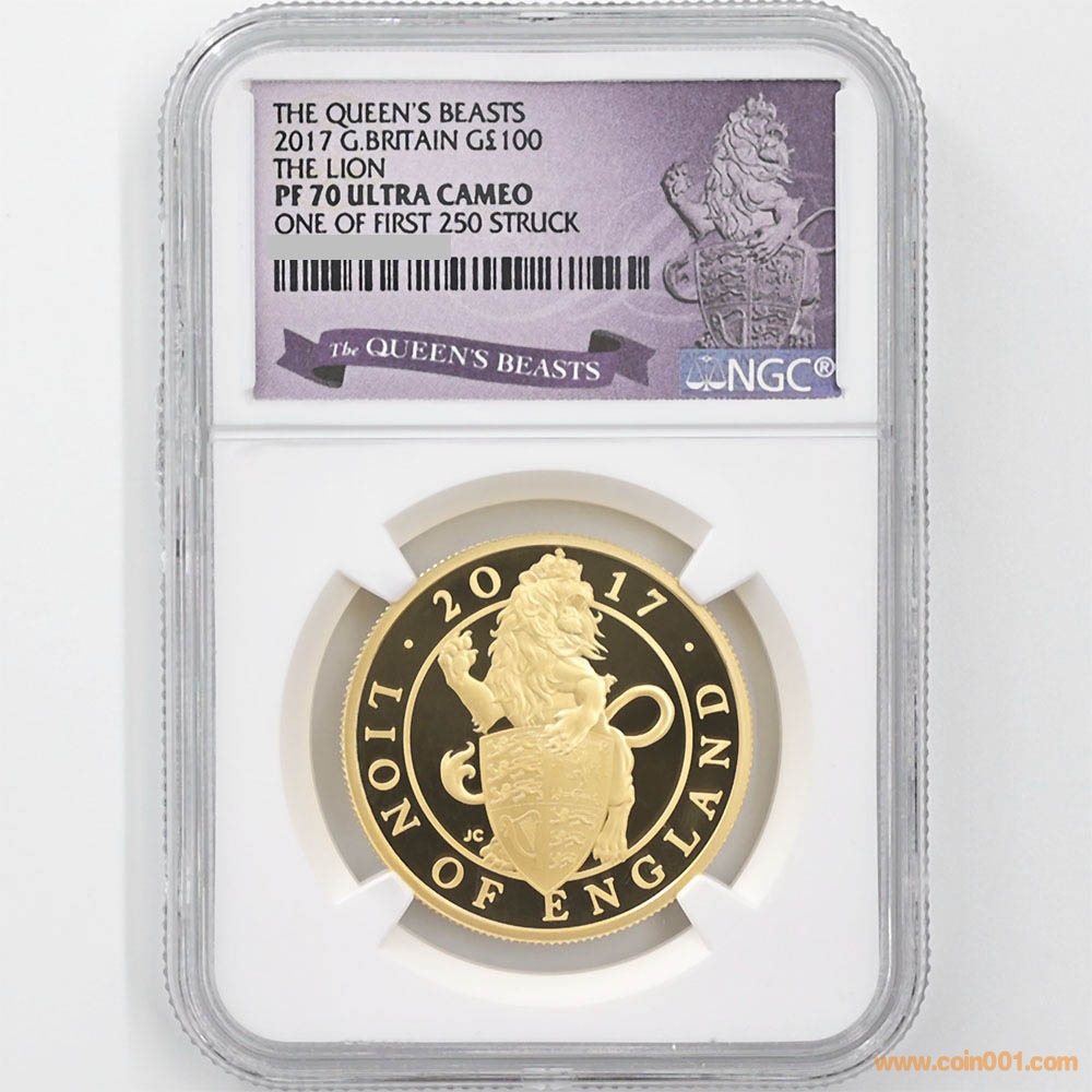 2017年 英國 女王的野獸——英格蘭獅子 100英鎊 1盎司 精制金幣 NGC/PCGS PF/PR 70 UC/DC