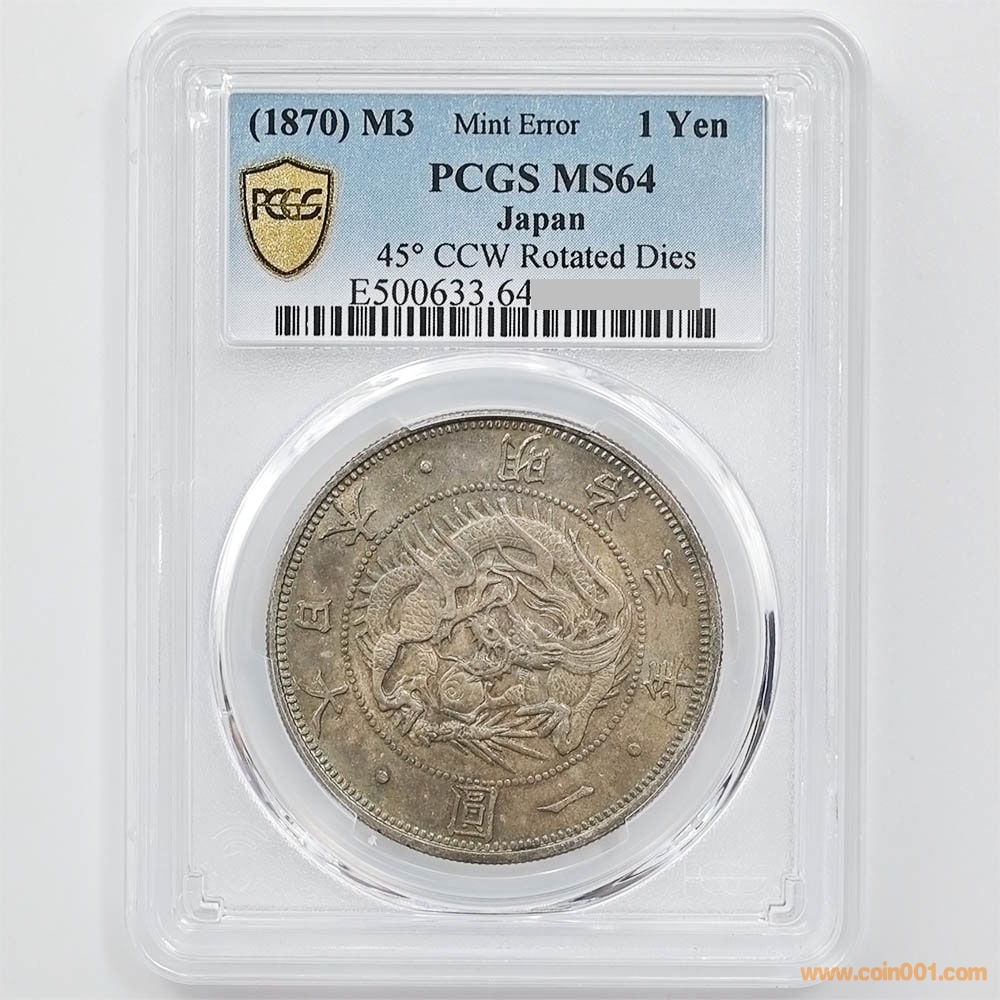 1870年 日本 明治3年  1日元銀幣 欠貝圓 有輪 PCGS MS 64------200,000元