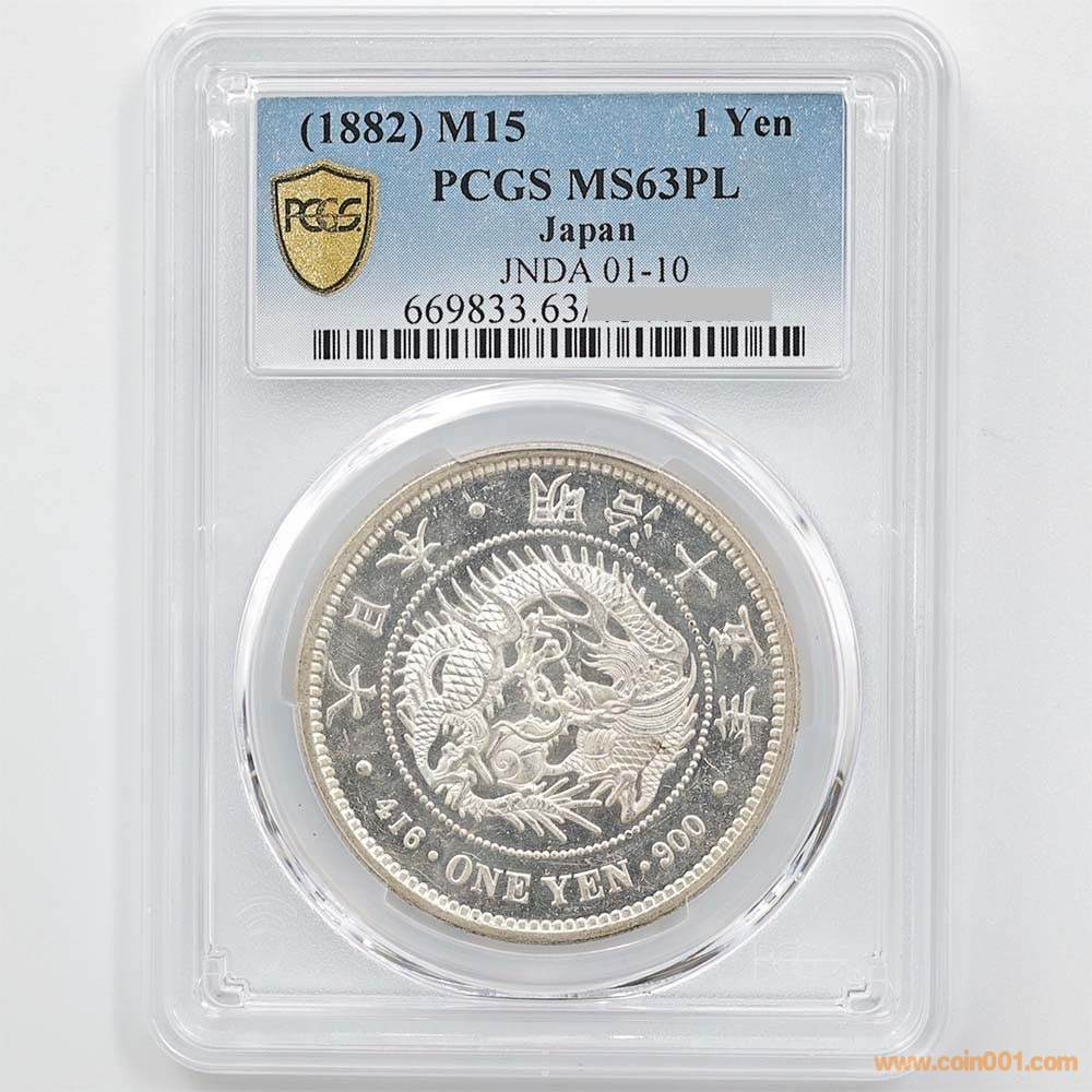 1882年 日本 明治 15年 1日元 銀幣(大型)PCGS MS 63 PL------100,000元