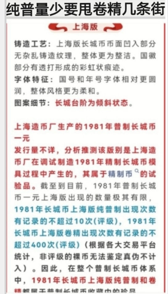本人贊同朋友們的推測,是上海造幣廠為了鑄造“卷精”,在前期進(jìn)行的試驗(yàn)品,品相好的,就是大家看到的NGC等評級分?jǐn)?shù)是65.66.67的等等,數(shù)量很少。還有就是品相粗糙的,是從紅旗本、水晶球里面取出來的,應(yīng)該是上海造幣廠把這些本應(yīng)該銷毀的給了“三產(chǎn)”聯(lián)營廠搞裝幀賺錢,數(shù)量稀罕。