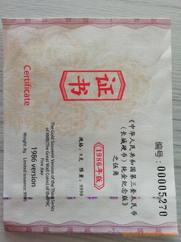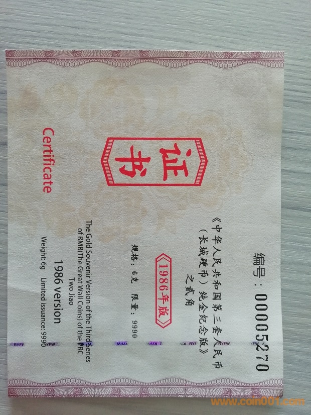 86長城 純金版