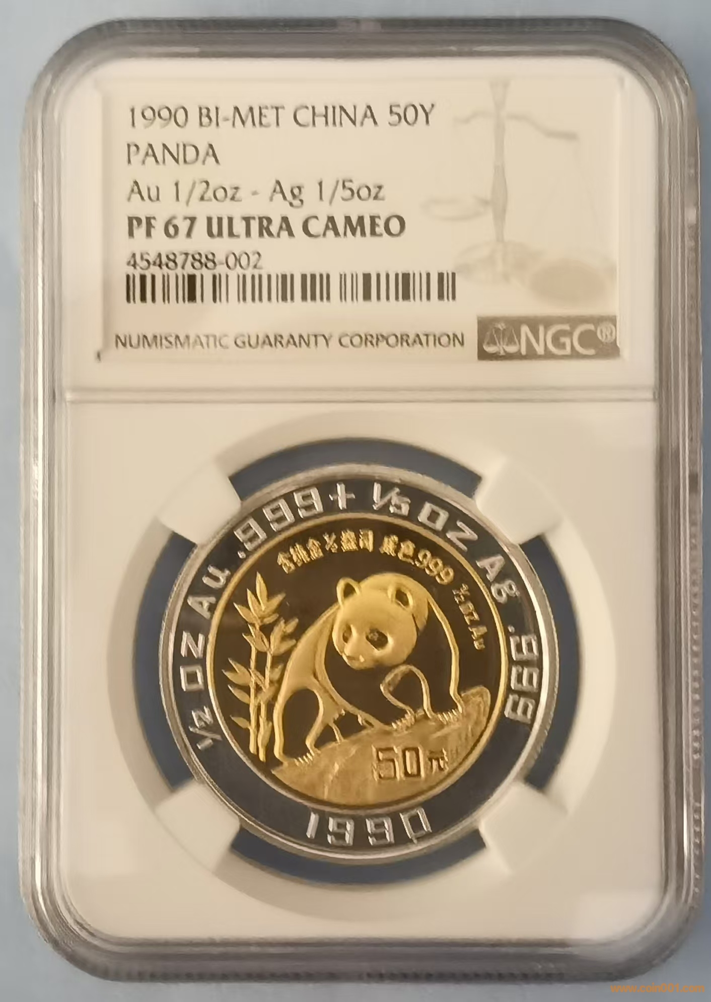 圖片:1990年金蕊銀環(huán)雙金屬紀(jì)念熊貓伏巖幣正面.jpg.jpg