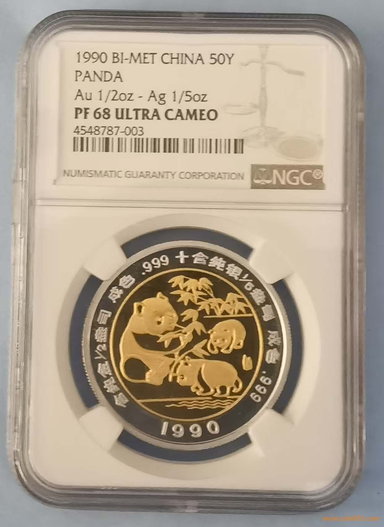 圖片:1990年金蕊銀環(huán)雙金屬紀(jì)念熊貓伏巖幣和熊貓玩水章背面.jpg