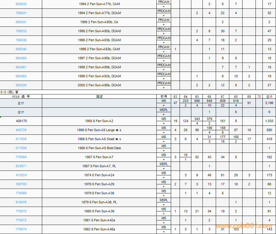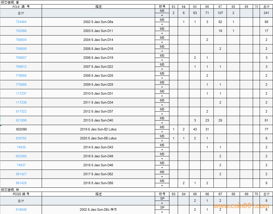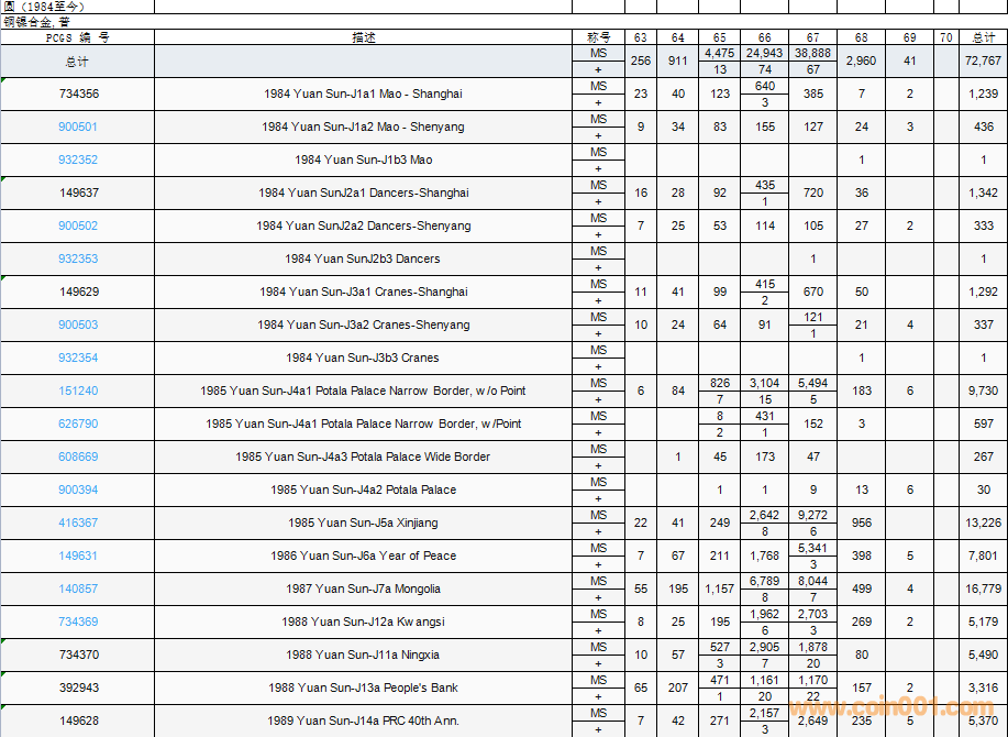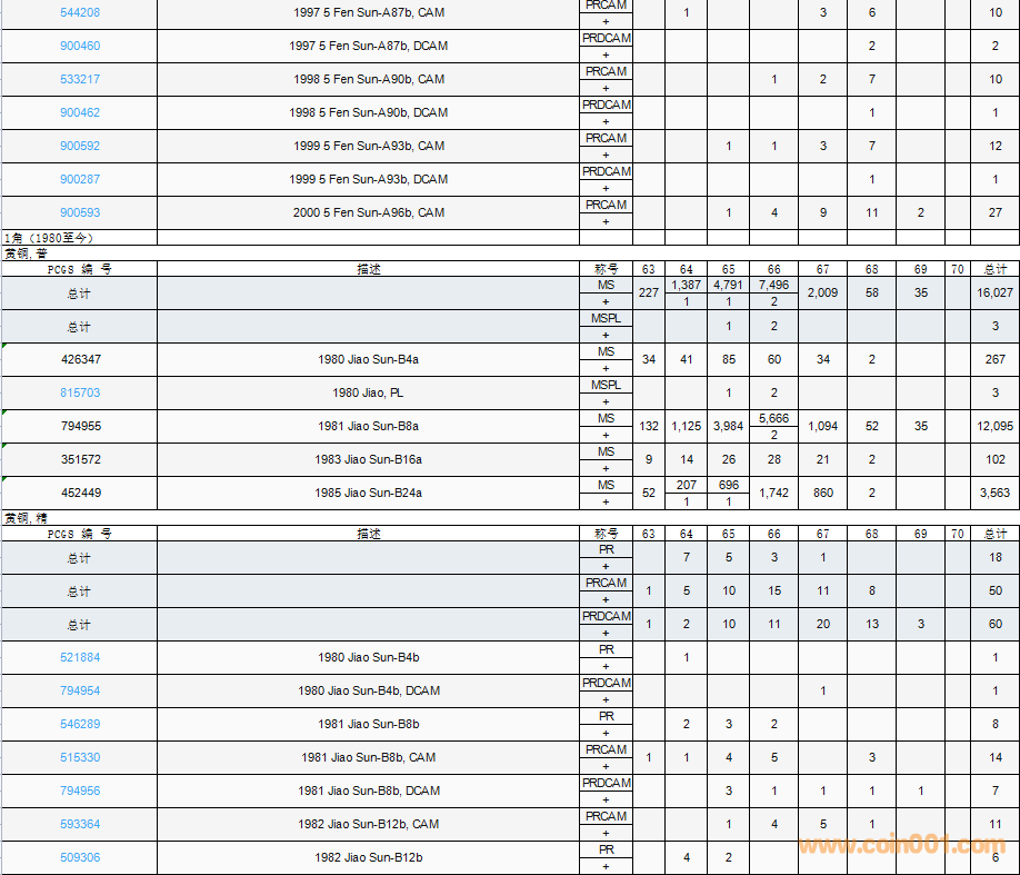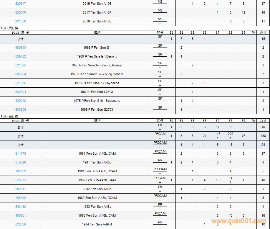 PCGS硬幣評(píng)級(jí)數(shù)量報(bào)告( ..