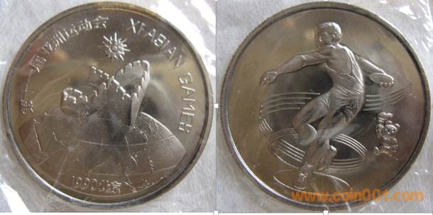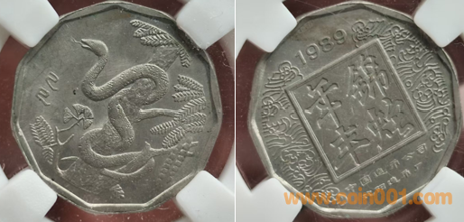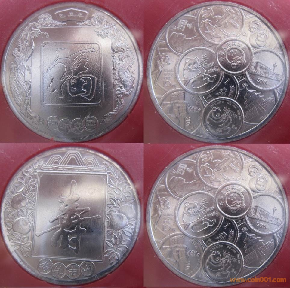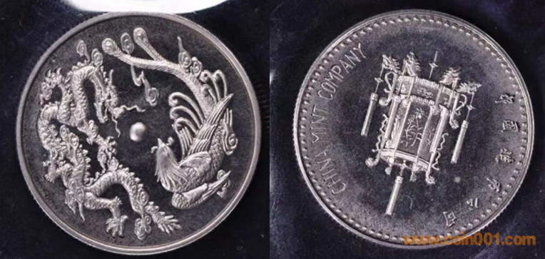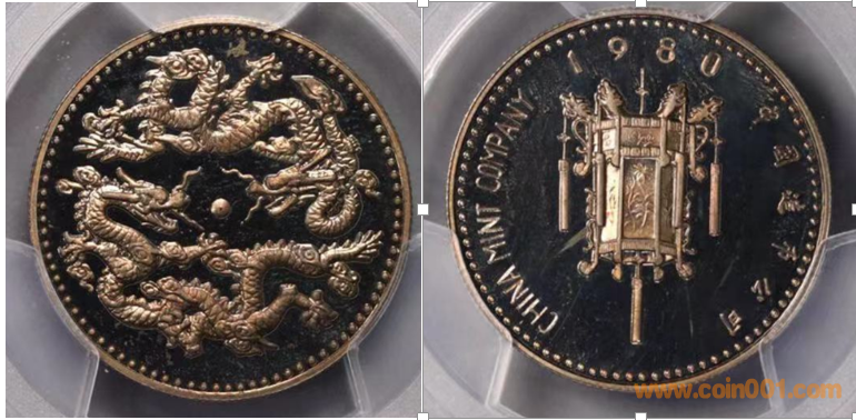 1980年上幣發(fā)行,白銅精制27mm。正面為雙龍、龍鳳、丹鳳,反面為1980年號版宮燈。