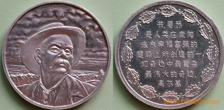 高爾基:1981年上幣制造,鋁普制38.6mm。制造量:鋁1枚。設(shè)計雕刻:曾成滬(手雕)。正面為高爾基頭像,反面為高爾基名言。