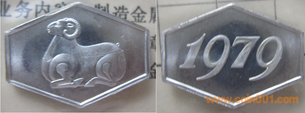 1979年發(fā)行,鋁普制22mm*16mm。正面為羊,反面為1979年號。