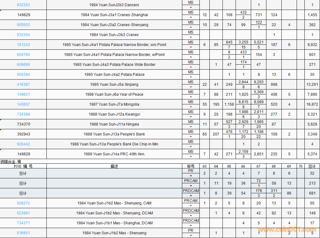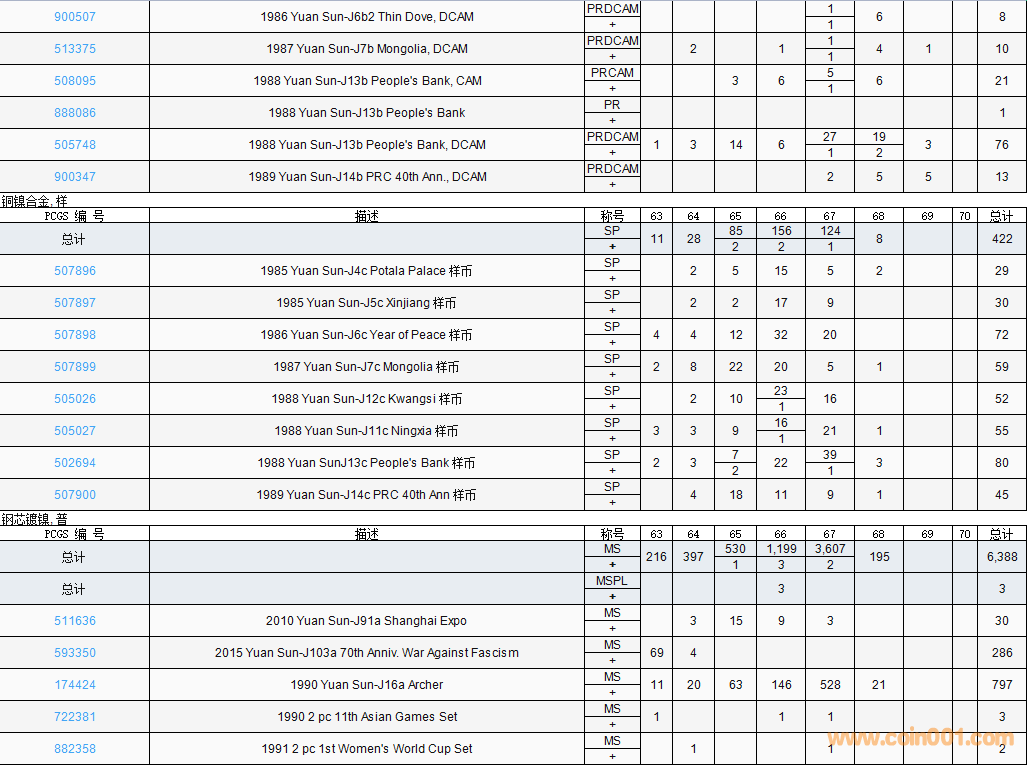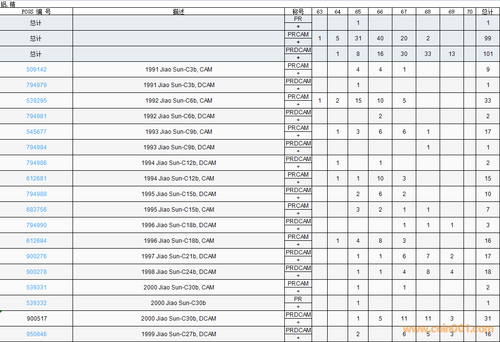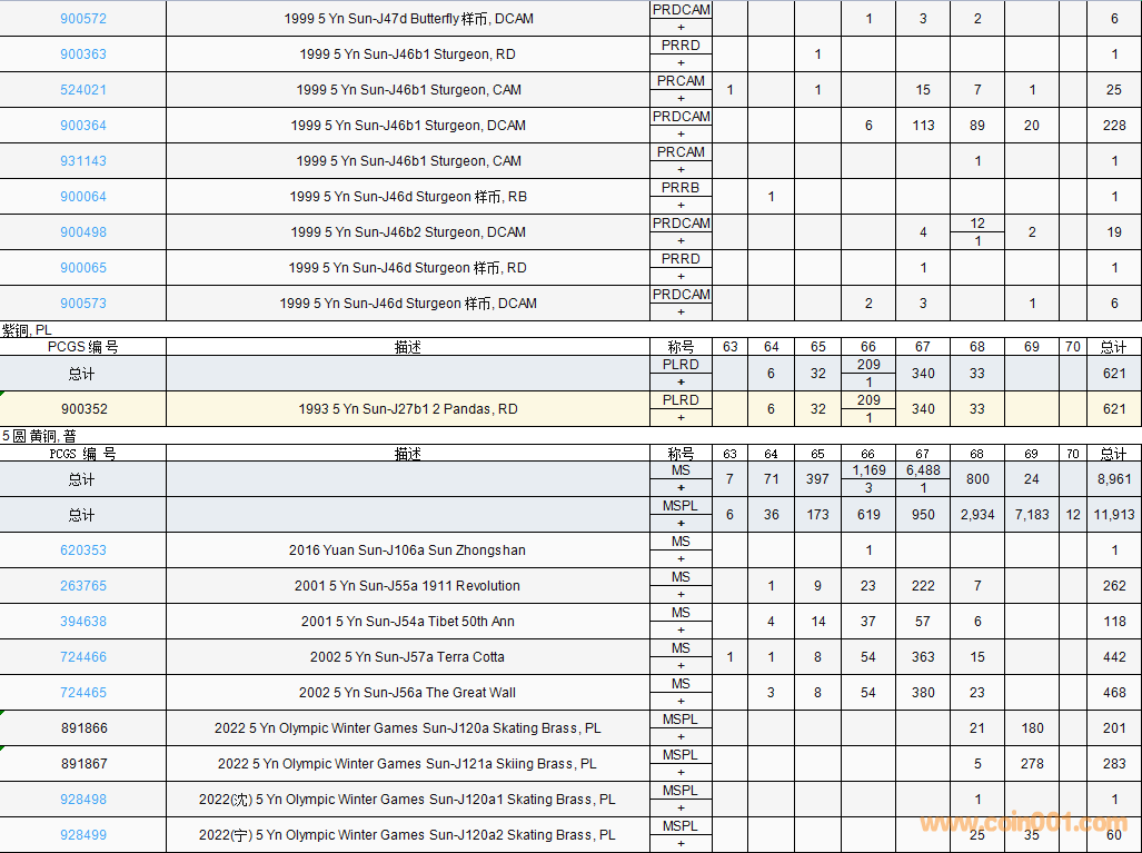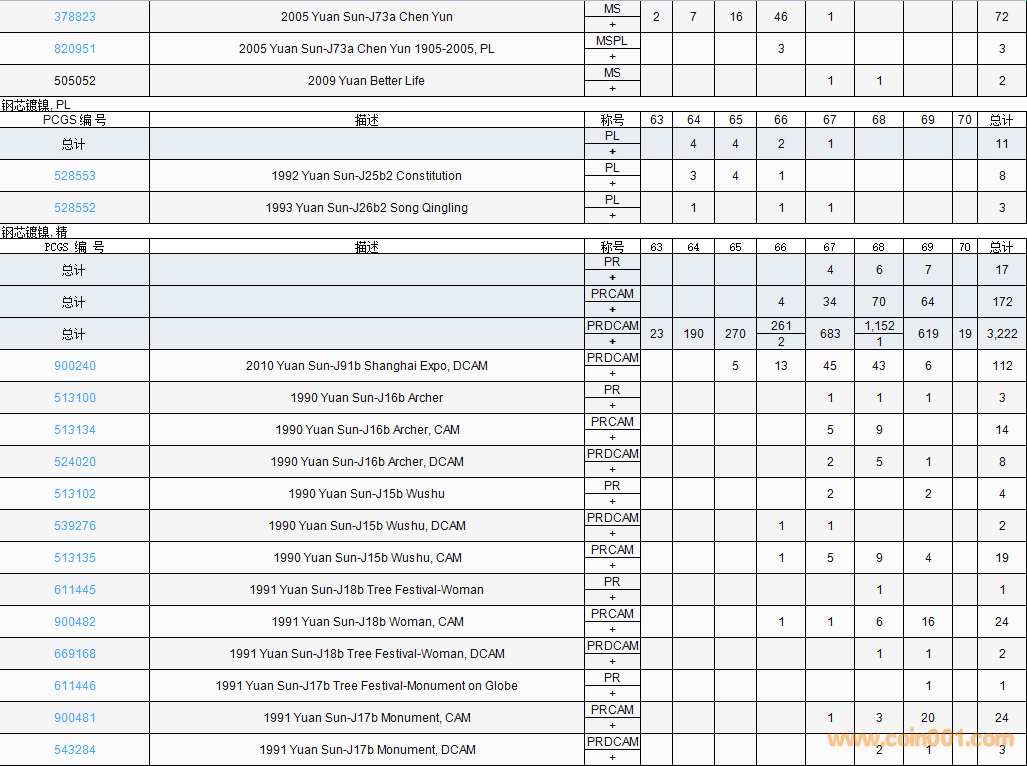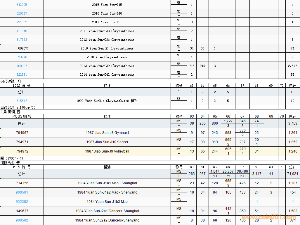 PCGS硬幣評(píng)級(jí)數(shù)量報(bào)告( ..