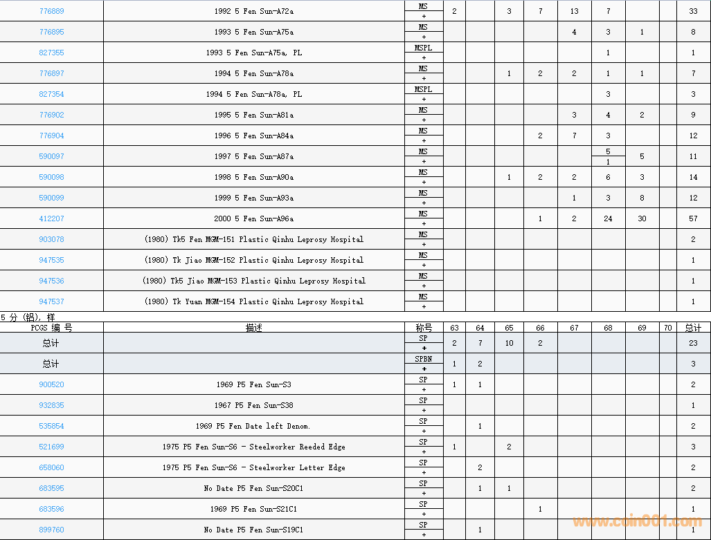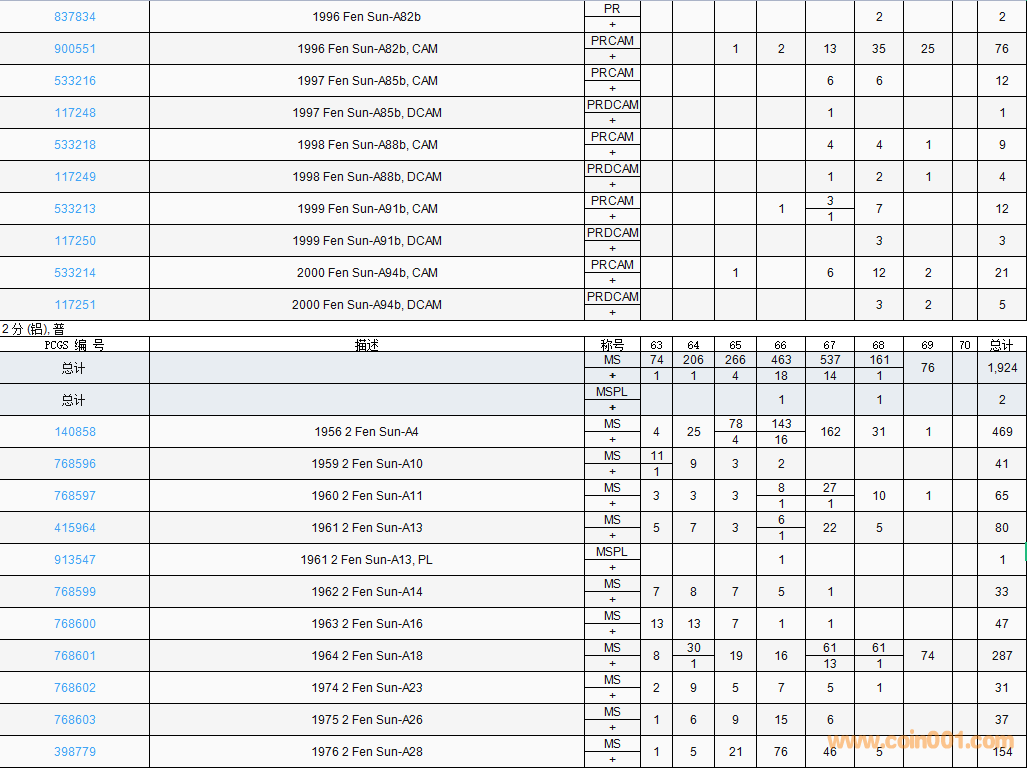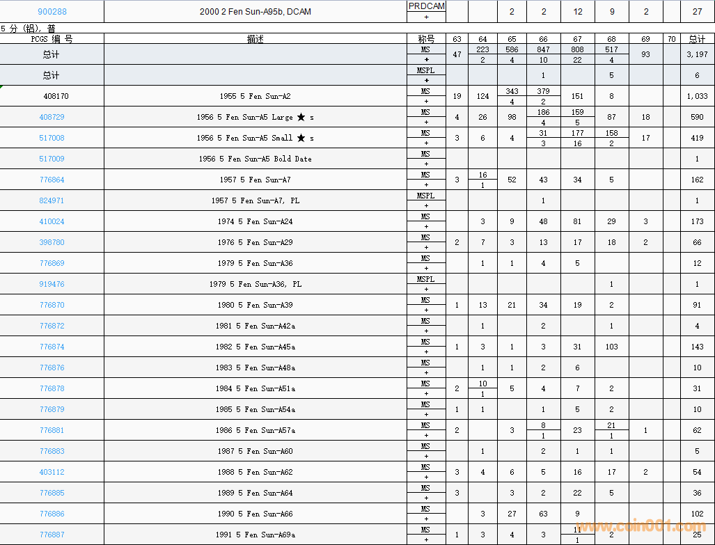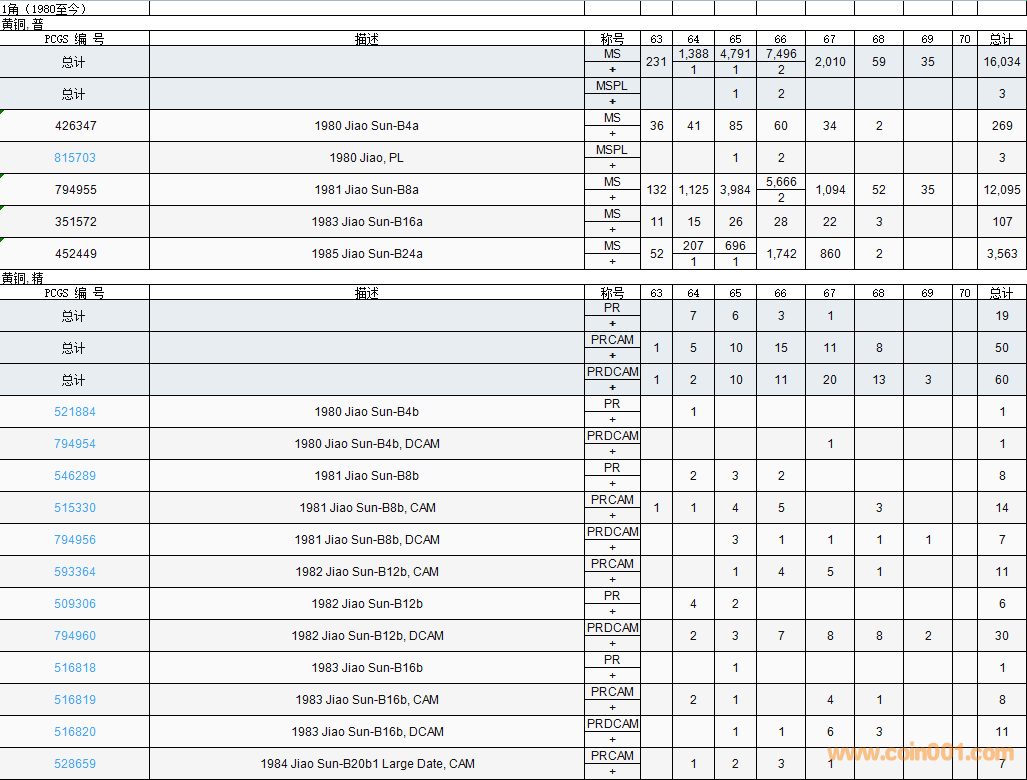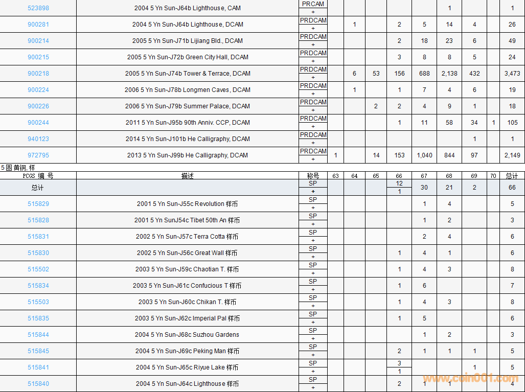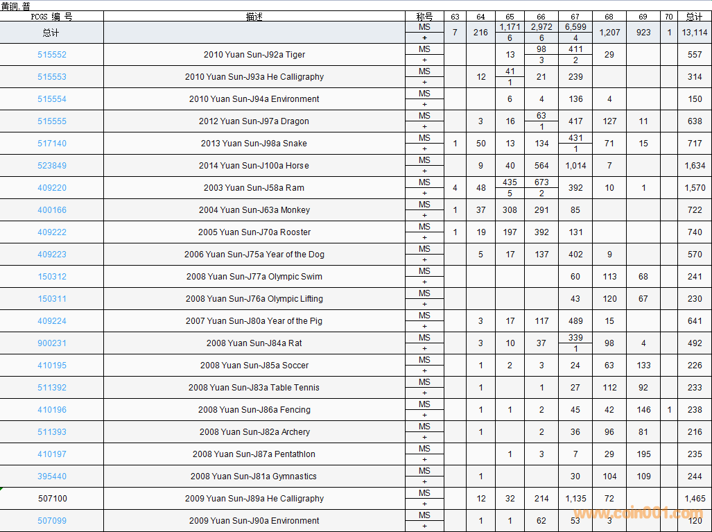 PCGS硬幣評(píng)級(jí)數(shù)量報(bào)告( ..