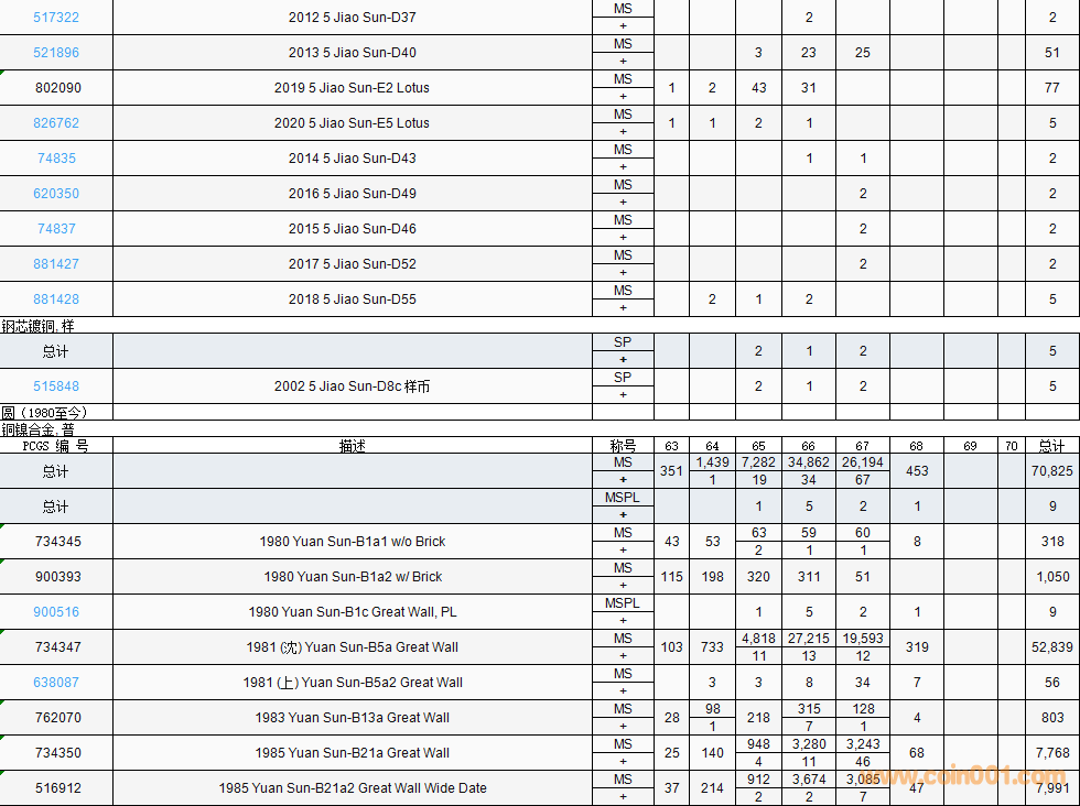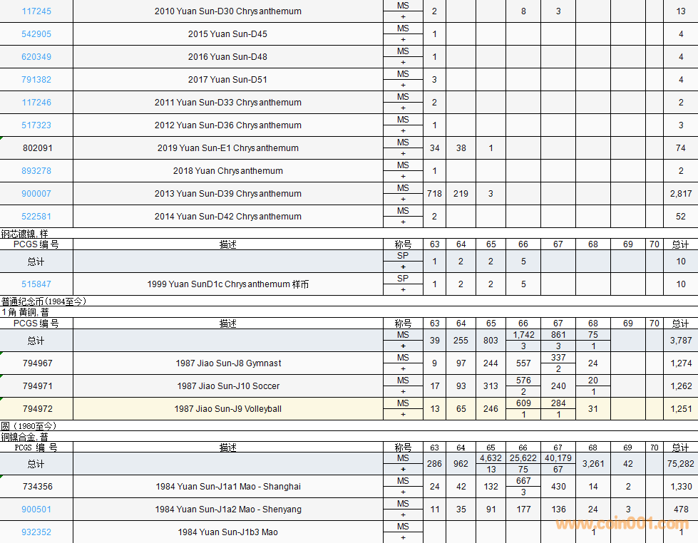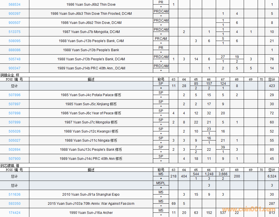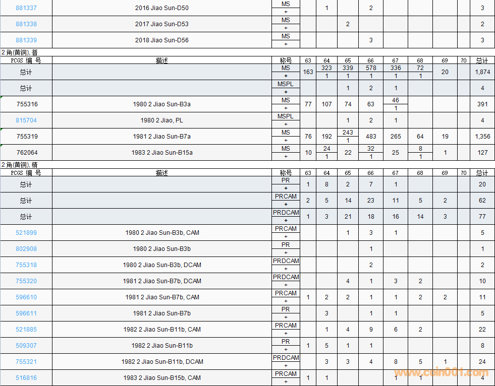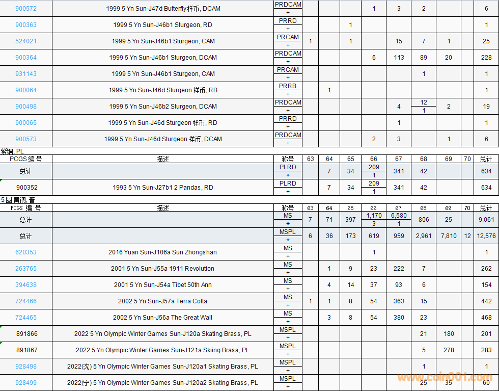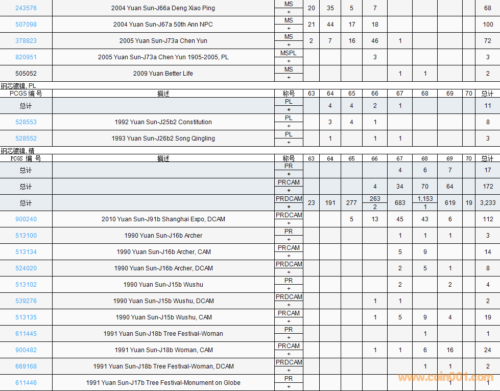 PCGS硬幣評級數(shù)量報(bào)告( ..